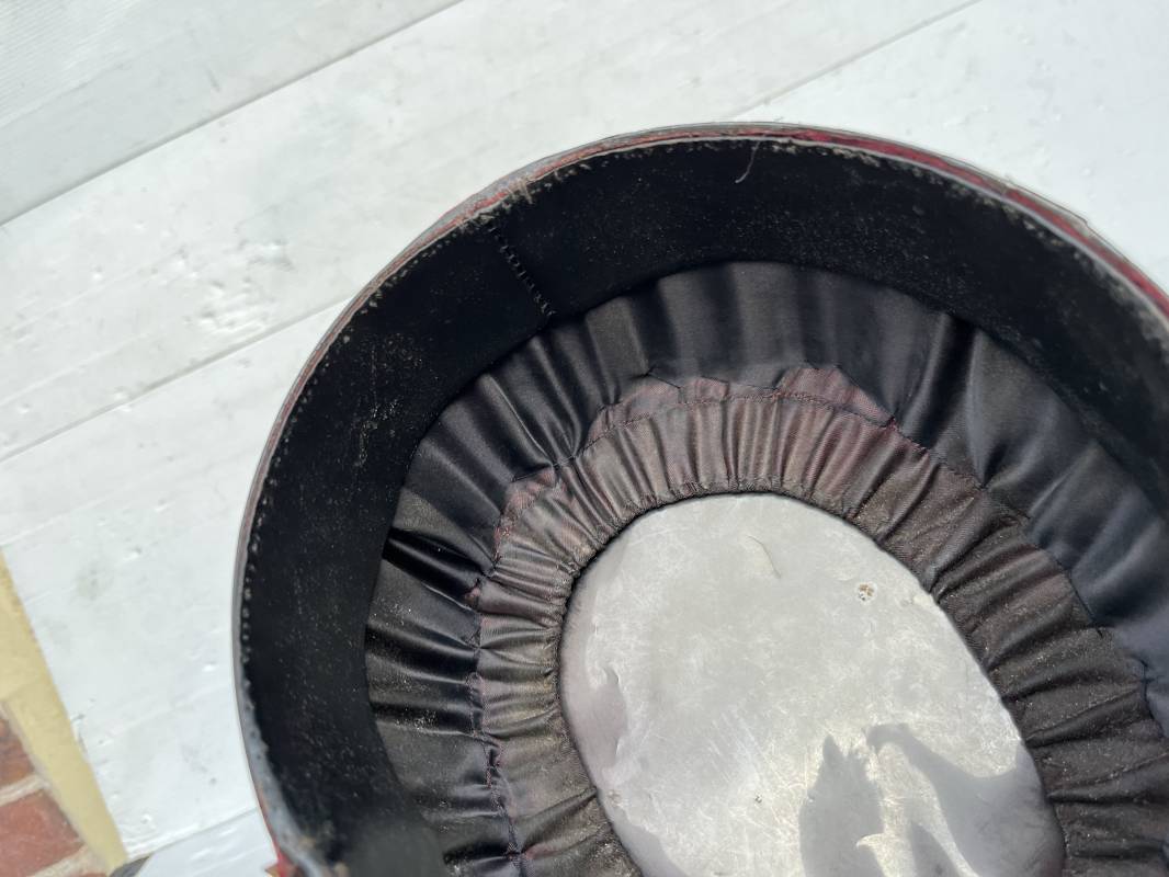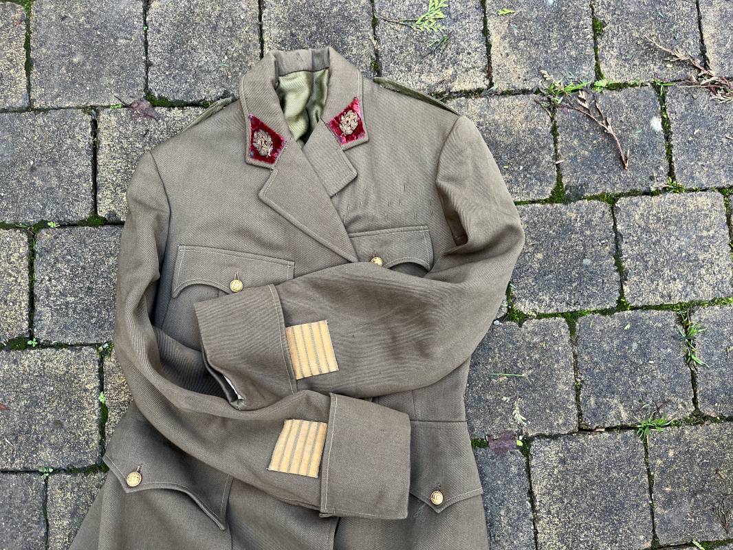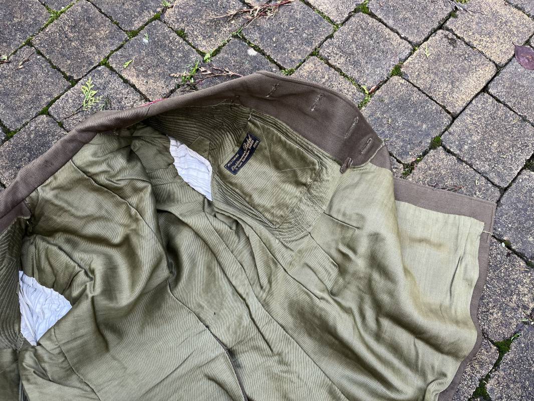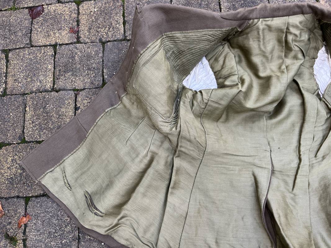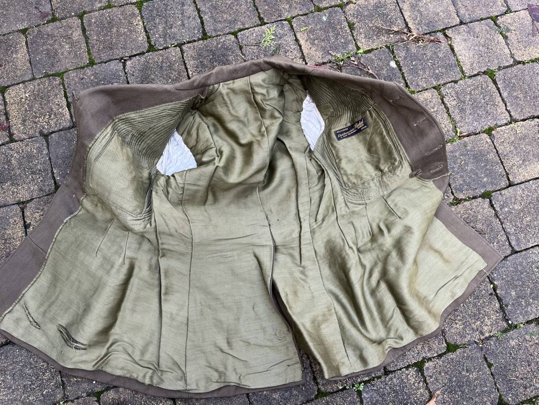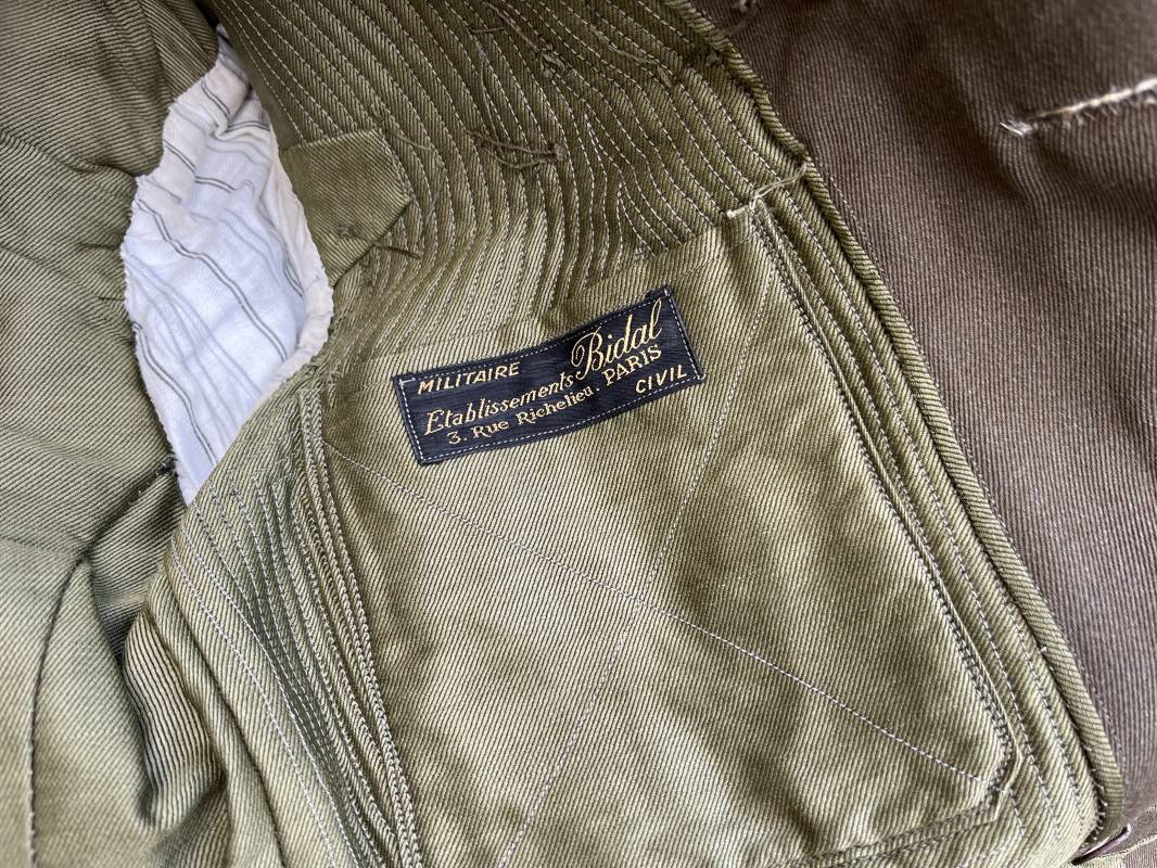 Veste et kepi d un officier au grade de colonel médecin . Veste modéle 1939 en gabardine kaki . Col ouvert , boutons dorés a caducé , quatre poches a rabats boutonnés , deux crochets métalliques de ceinturon . Pattes épaules en gabardine Pattes de col a fond velours cramoisi et caducé brodé cannetille dorée . Grades de manches de colonel .Nombreuses brides de decorations sur le haut de la poitrine gauche . Interieur doublé en satinette kaki , deux poches interieures Etiquette tailleur militaire a Paris . Nominette illisible . Largeur epaules 41 cm , longueur 78 cm , manches 61 cm . Beau képi modéle 1931 d un officier colonel médecin . Bandeau de velours cramoisi , galons dorés , fausse jugulaire et petits boutons dorés du service de santé .. Hauteur kepi 103 mm . Visière en cuir noir , petit jonc sur le pourtour . Intérieur doublé en satinette noire , bandeau de coiffe intérieur en cuir noir taille 58 . . Bel ensemble porté en bel état 1939/40 Ref 21644