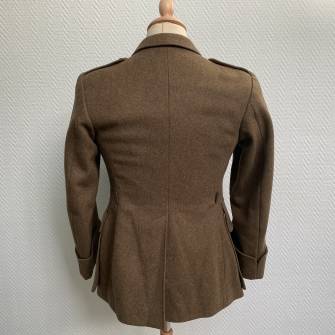 Belle veste modèle 1939 d'un sous officier en drap kaki.veste sans aucun insigne . Confection d'achat privé par Tailleur Militaire. Veste modèle 1939 col ouvert, pattes d'épaules, quatre poches, boutons demi sphériques. Bas des manches à rabats. Intèrieur doublé en satinette marron foncé. Etiquette Tailleur Militaire V. Lefrançois à Lyon. Drap frais. Légèrement portée en parfait état. Largeur d'épaules 42cm. Longueur totale 75cm. Manches 60cm 193945. Ref 13815