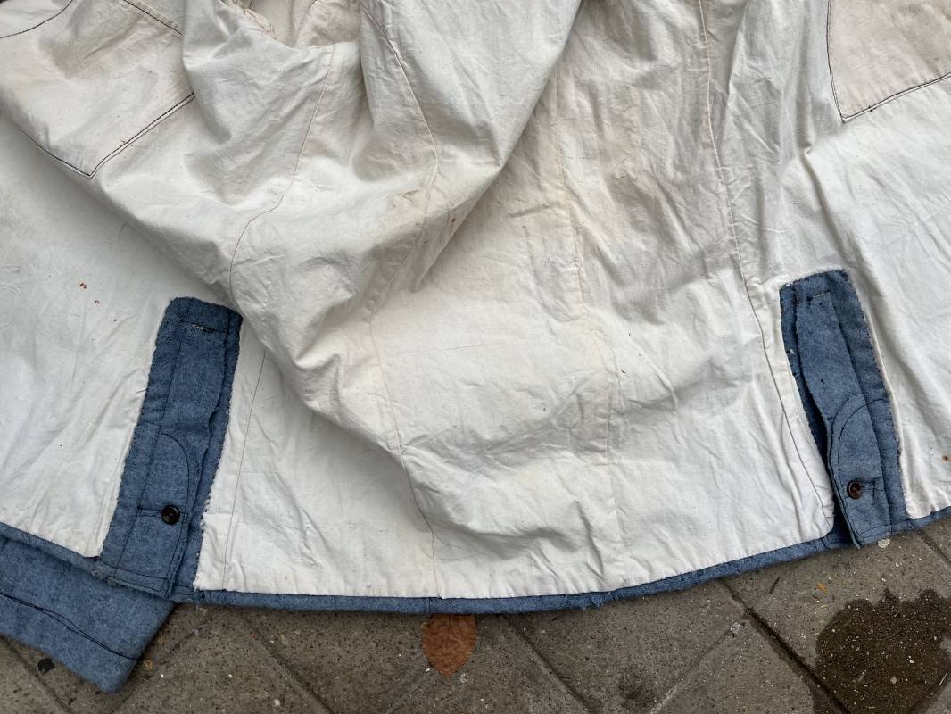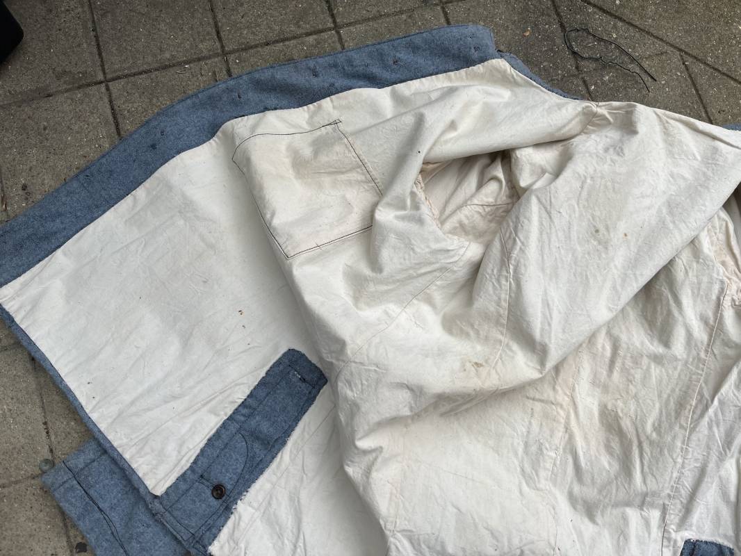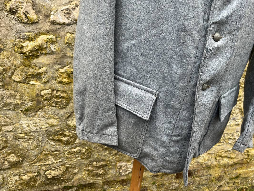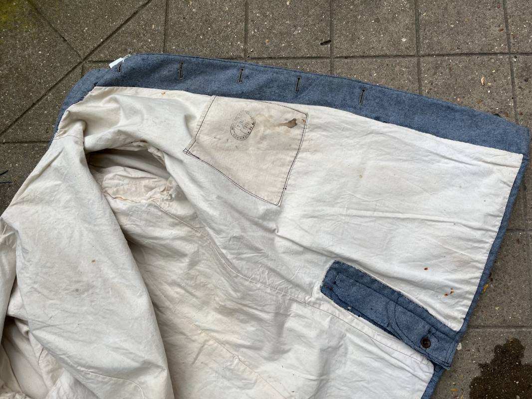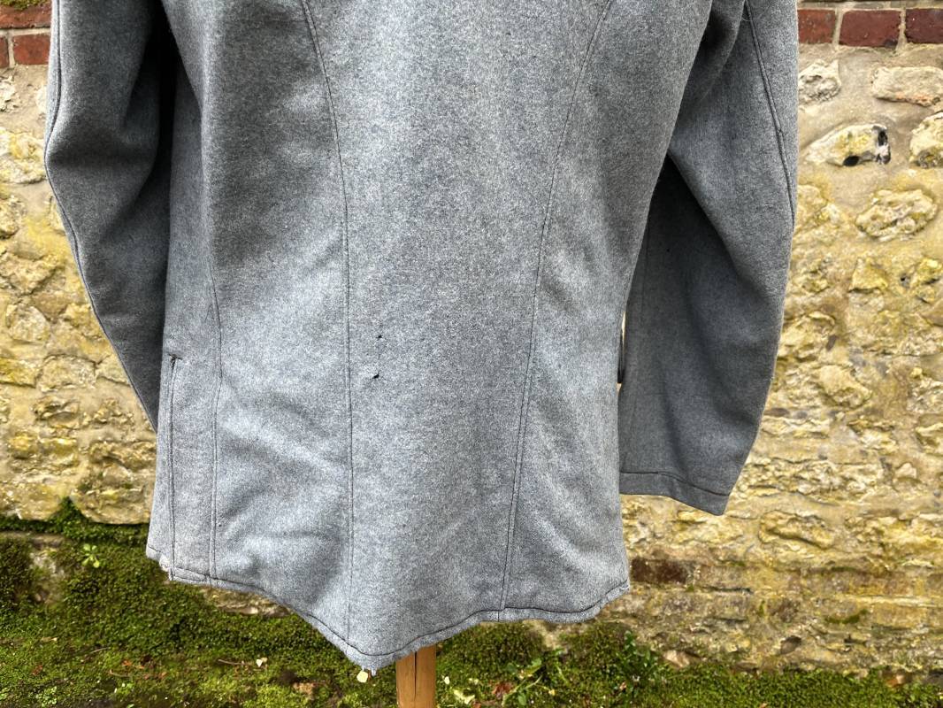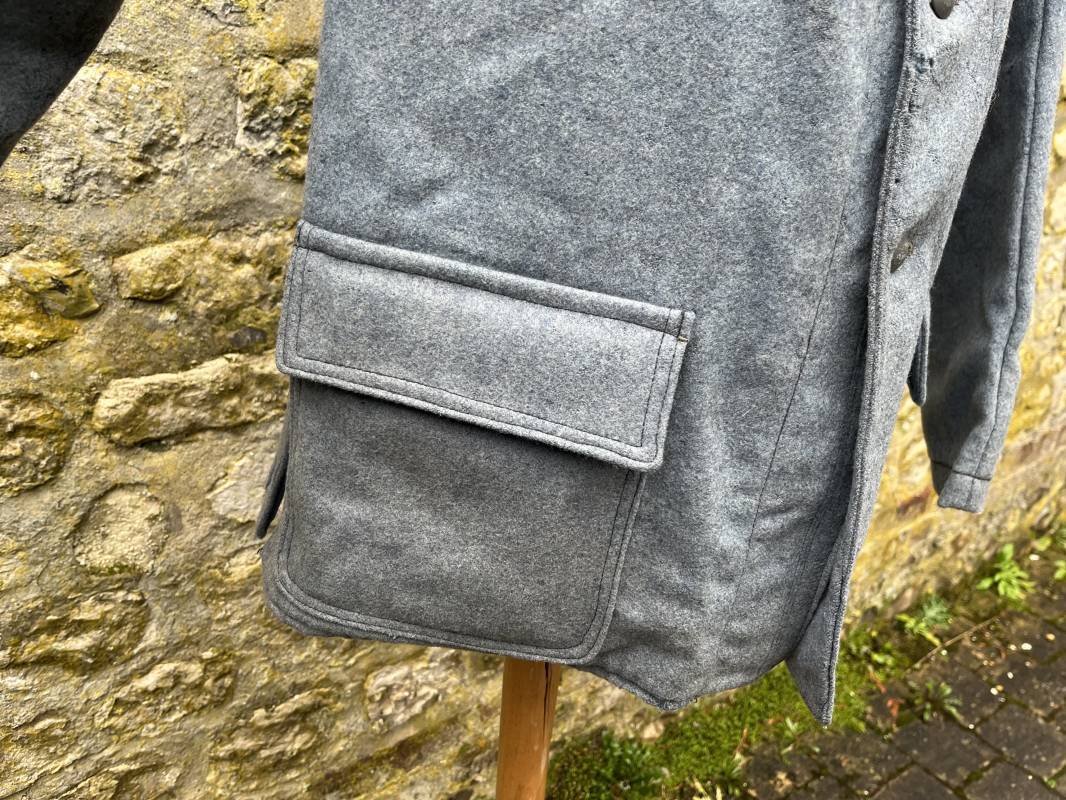 Rare veste troupe modèle 1914 en drap bleu clair typique des fabrications précoces ( 1915) . Veste réglementaire, col droit. Crochet métallique de fermeture au col . Fermeture frontale à cinq boutons métallique rond du modele toute arme . Deux poches basses plaquées en drap à rabat .Pas de patte de ceinturon , il ne semble y en avoir jamais eu de monter . Intèrieur doublé en toile de coton blanc. Tampon oval de réception daté 1915 . Veste légèrement portée en parfait état . Drap trés frais . . Largeur d'épaules 45cm. Longueur totale 78cm. Manches 63 cm Rare veste modele 1914 typique de l'année 1915/16 .Modéle peu courant qui sera rapidement remplacé par le modéle 1915 Ref 19643