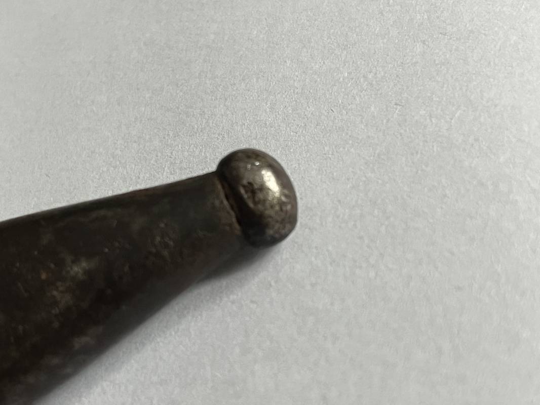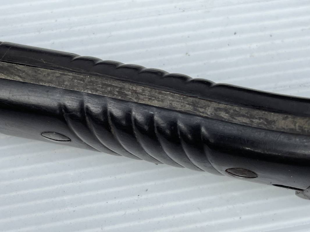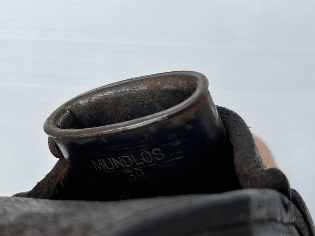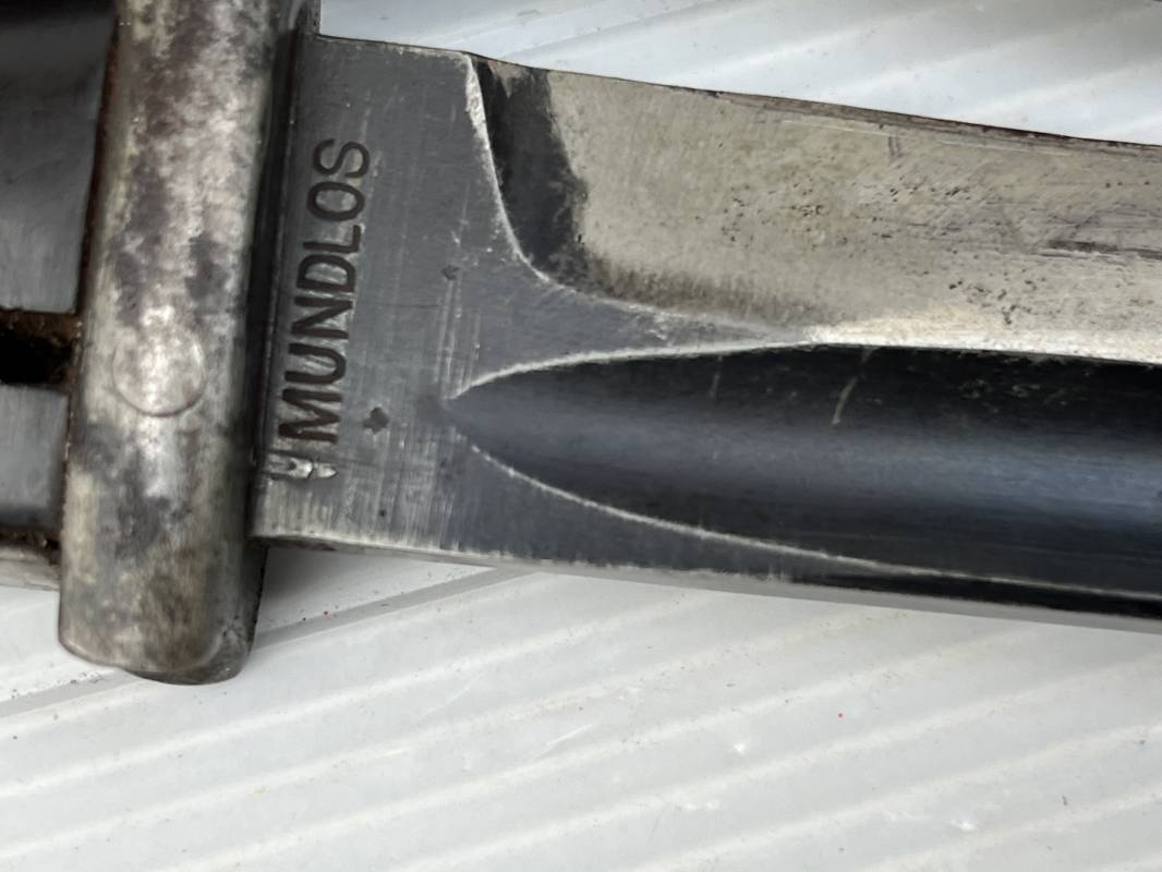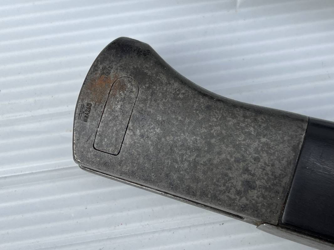 Trés belle Baionnette modèle 84/98 plaquettes bakélite marron foncé et son gousset en cuir noir retourné de la Luftwaffe affecté au Flak Reiment 9 . Bel ensemble trouvé telquel . Baionnette aux mémes numéros . 4621 a sur fourreau et lame , marquage fabricant Mundlos et daté 39 sur tranche de la lame . Bouton poussoir sur pommeau.Aigle WaA sur bouerolle et pommeau . Belle lame bronzée d'origine Fourreau métallique bronzé. Pontet métallique de fixation du gousset. Gousset en cuir retourné noir avec rivets alu Marquage fabricant et d affectation au I/Flak Rgt 9 réceptionné LBA daté 1939 . Bel ensemble porté en bel état 100 % nature et intouché . Ref 16828