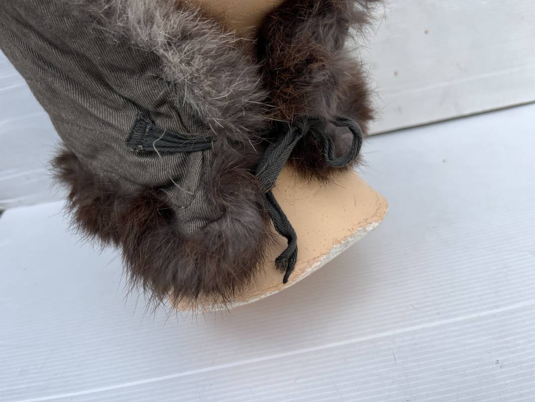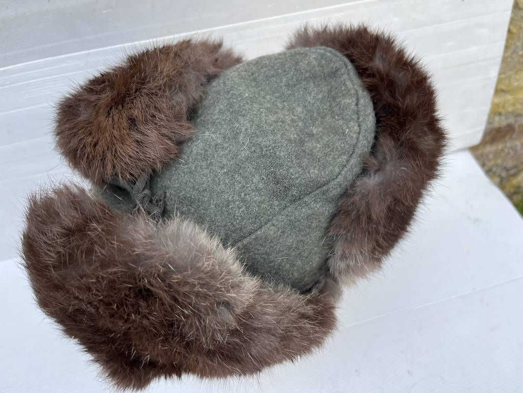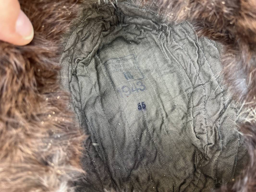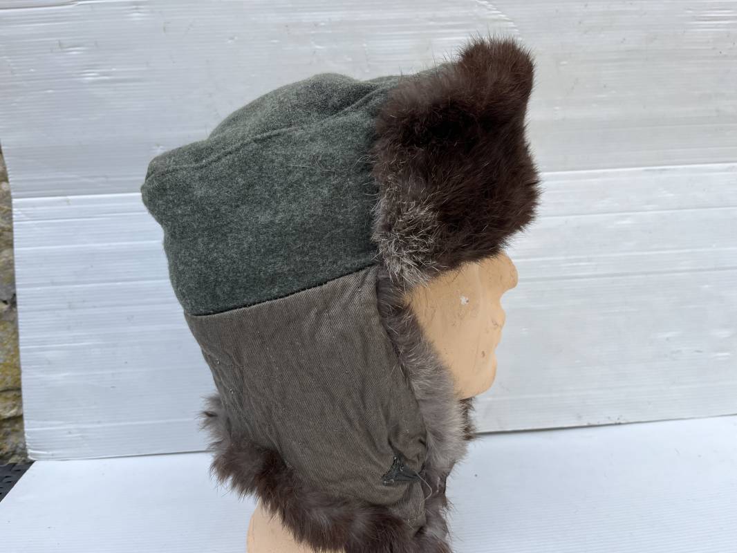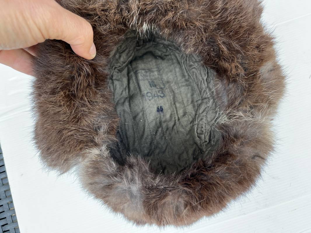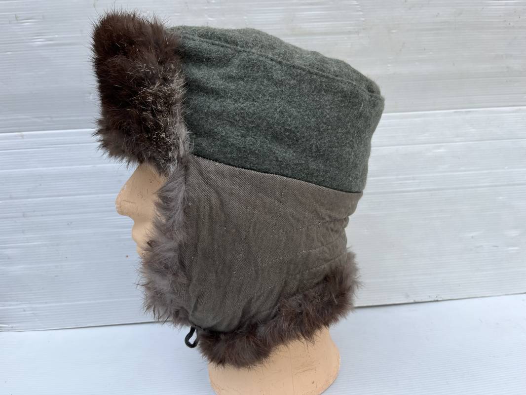 Bonnet grand froid de la Wehrmacht . Bonnet en drap feldgrau avec rabats fourrés en lapin. Lacets de serrage en coton. Intérieur doublé en satinette grise. Taille 55.Marquage code fabricant Rbnr Daté 1943 Légèrement porté en parfait état. Belle coiffure grand froid de la Wehrmacht Ref 21181