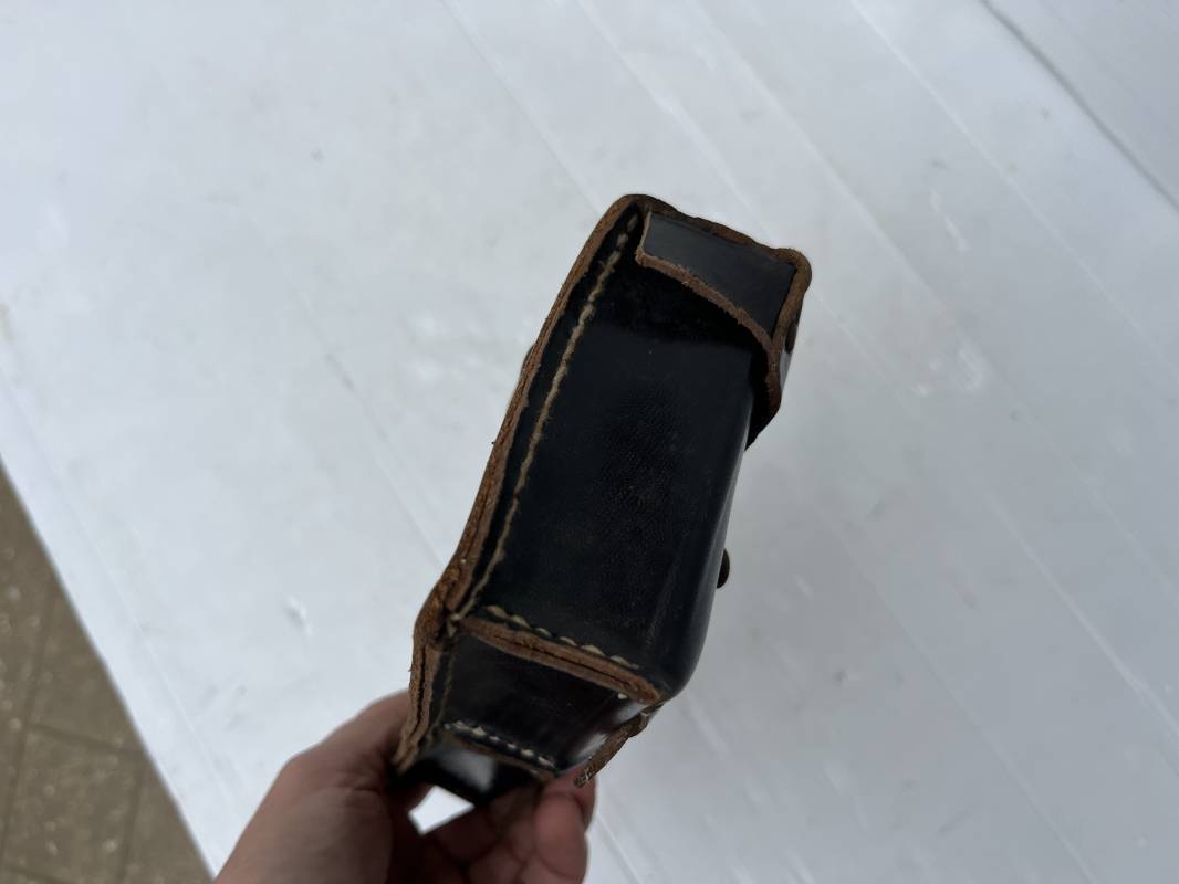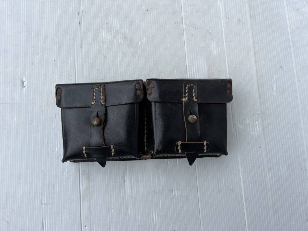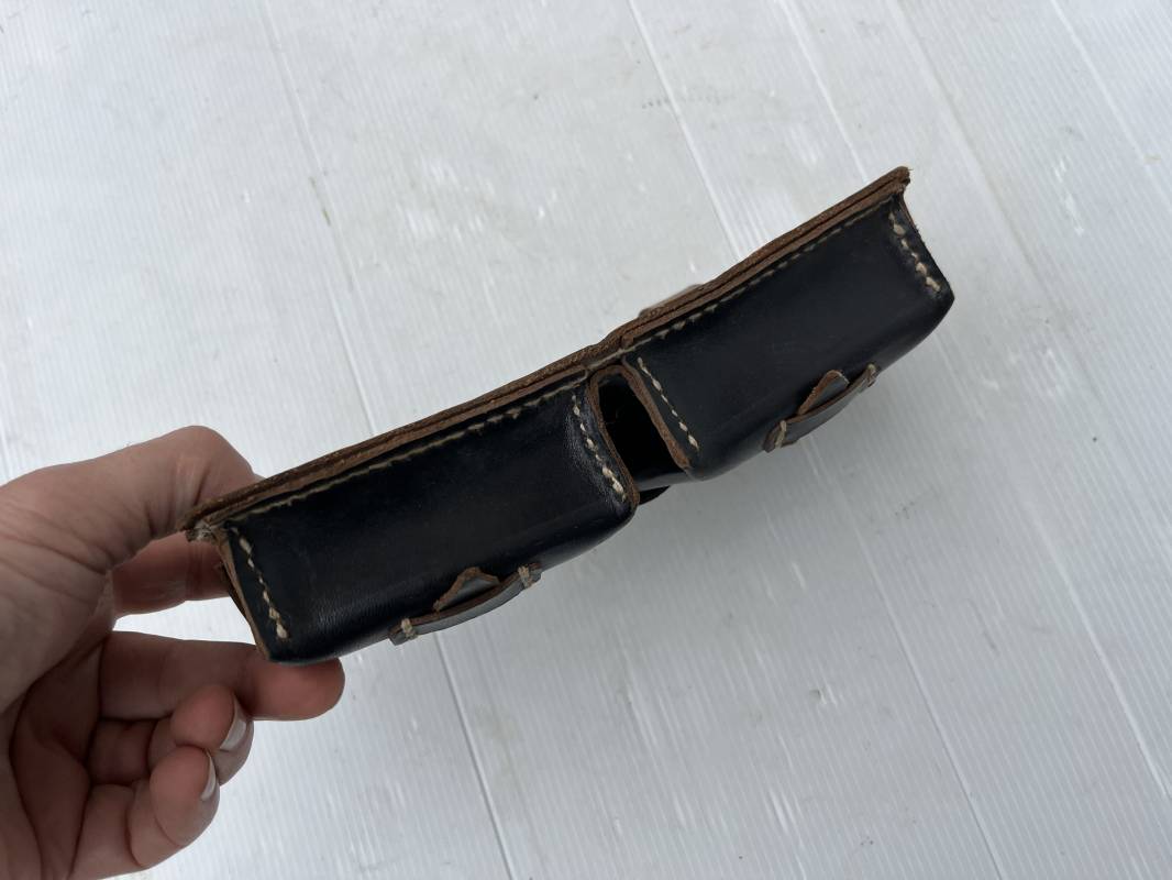 Trés belle cartouchière pour chargeurs de G43 . Cartouchière en cuir lisse noir . Rivets acier . Passants cuir ceinturon , anneau fer pour brelage . Cuir souple , jamais ciré . Cartouchière en parfait état . 1943/45 ref 21776