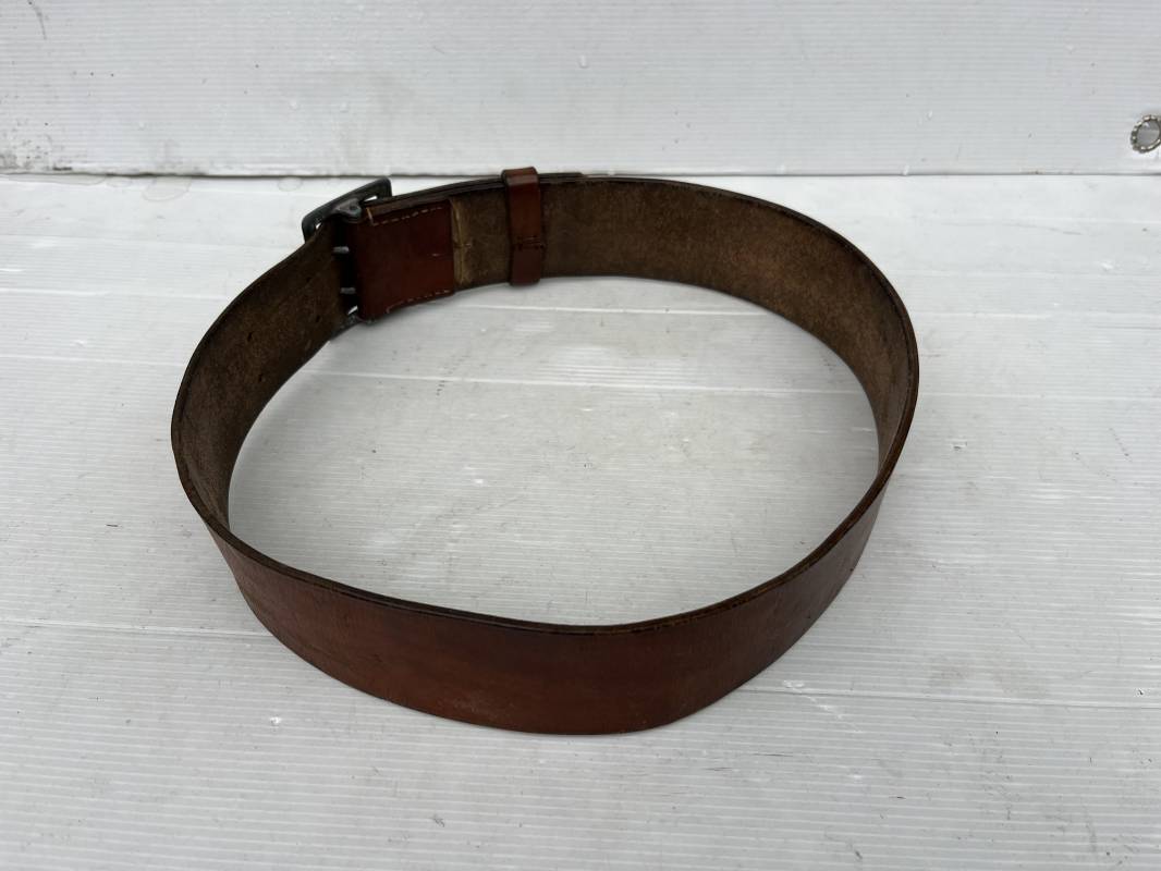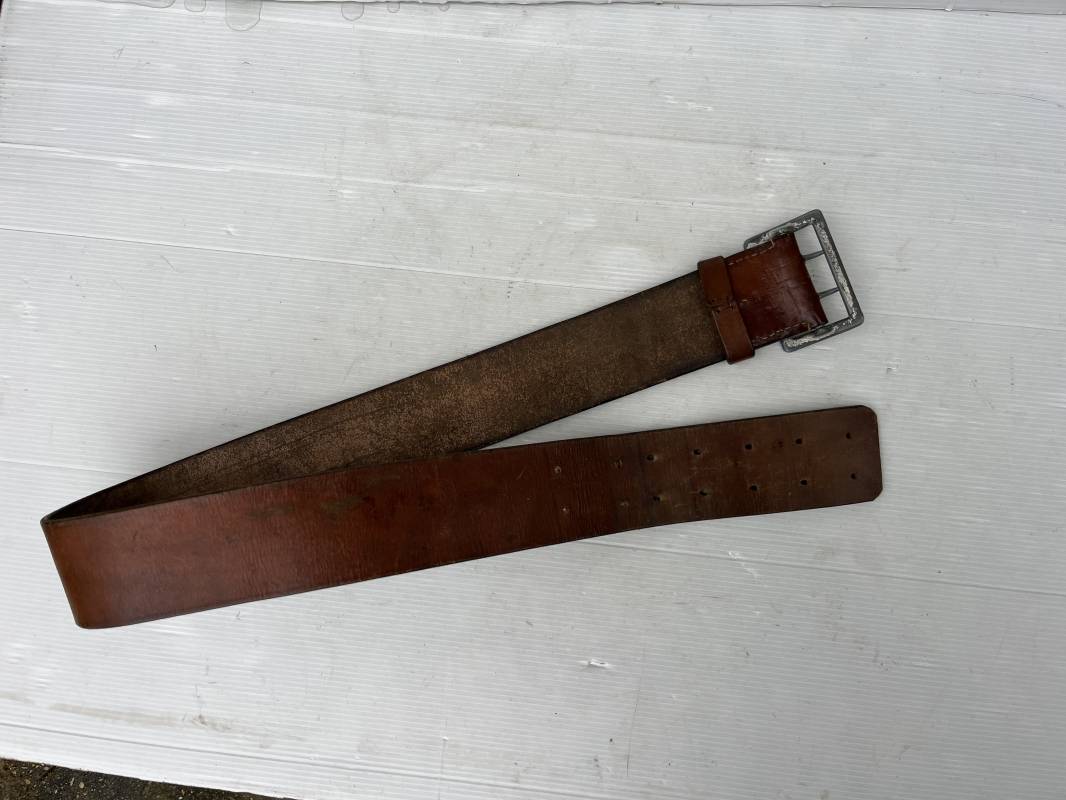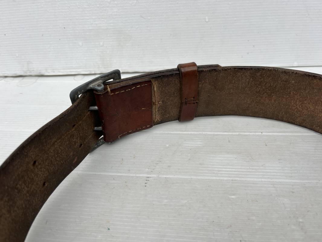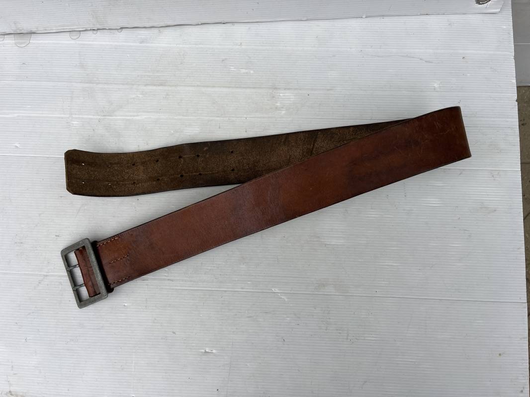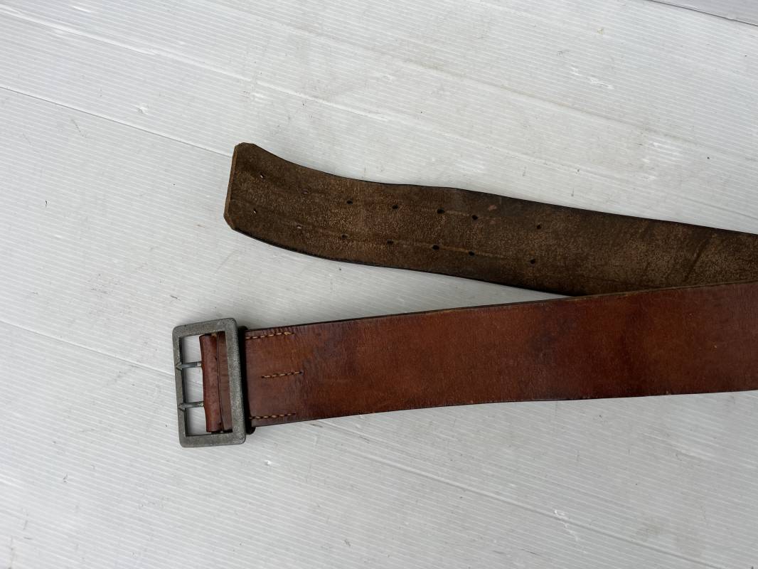 Beau ceinturon officier de la Wehrmacht en cuir marron . Boucle metal grenelé a deux adillon . Largeur cuir 57 mm Longueur 100 cm . Passant cuir mobile . Marquage fabricant L. Zesg Wosneg Mullrose 1942 . Cuir souple , légérement porté en bel état Ref 21319