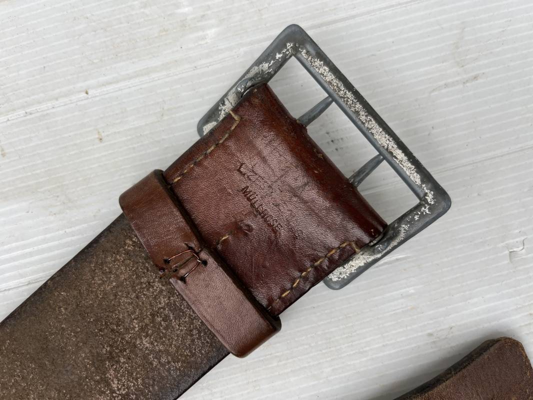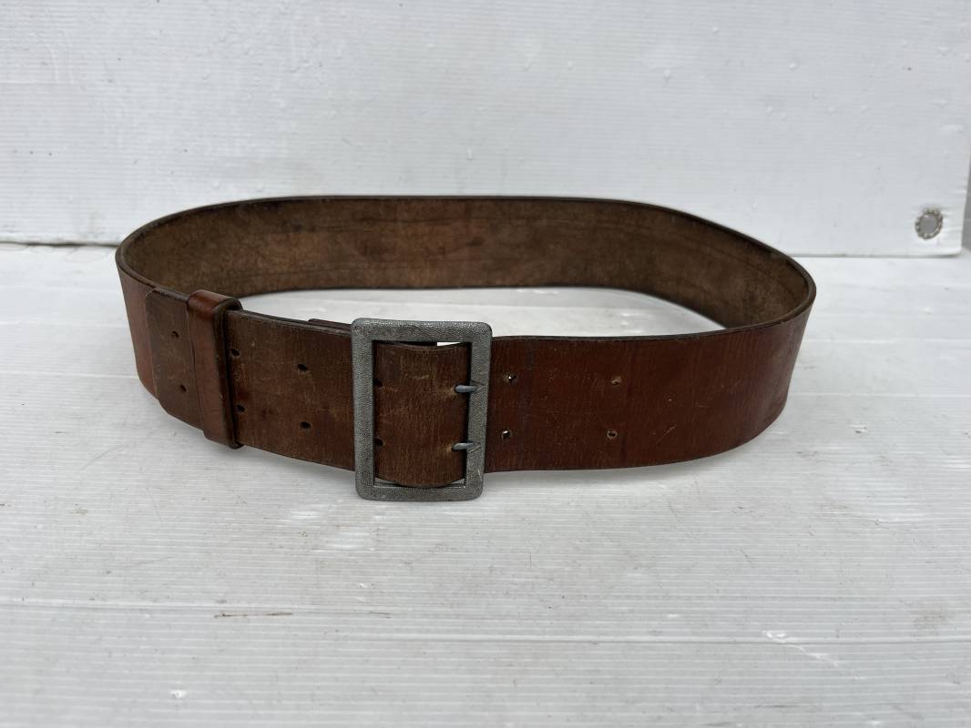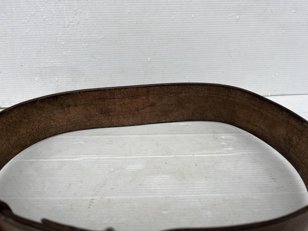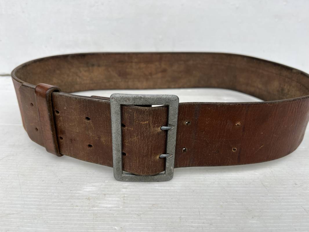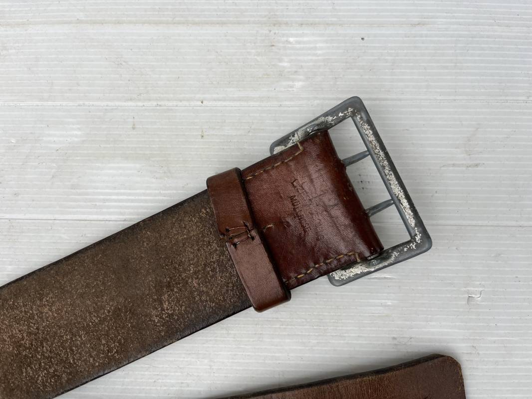 Beau ceinturon officier de la Wehrmacht en cuir marron . Boucle metal grenelé a deux adillon . Largeur cuir 57 mm Longueur 100 cm . Passant cuir mobile . Marquage fabricant L. Zesg Wosneg Mullrose 1942 . Cuir souple , légérement porté en bel état Ref 21319