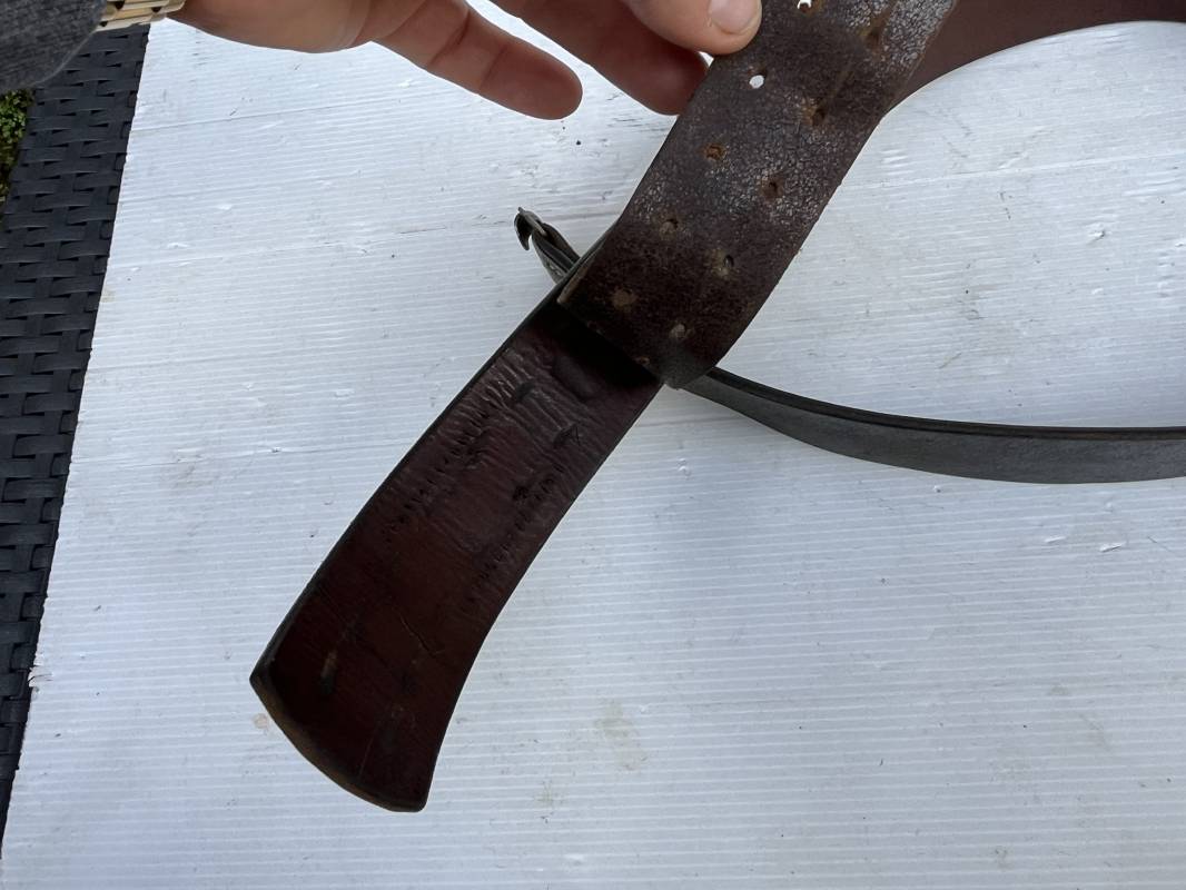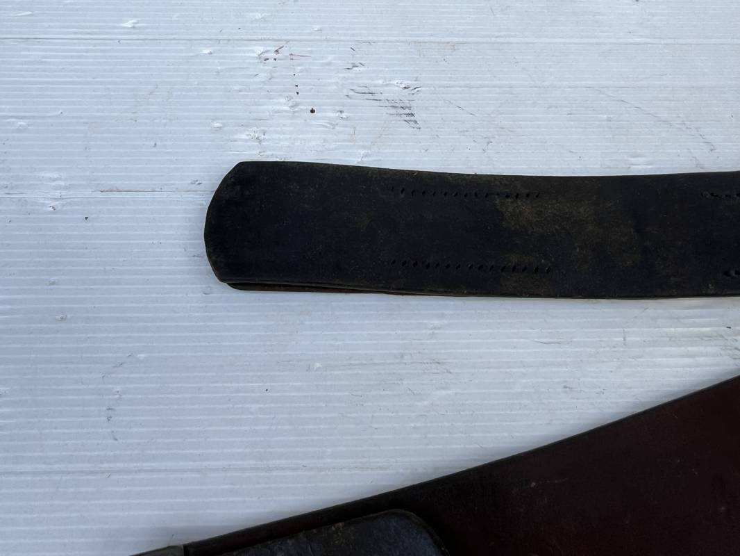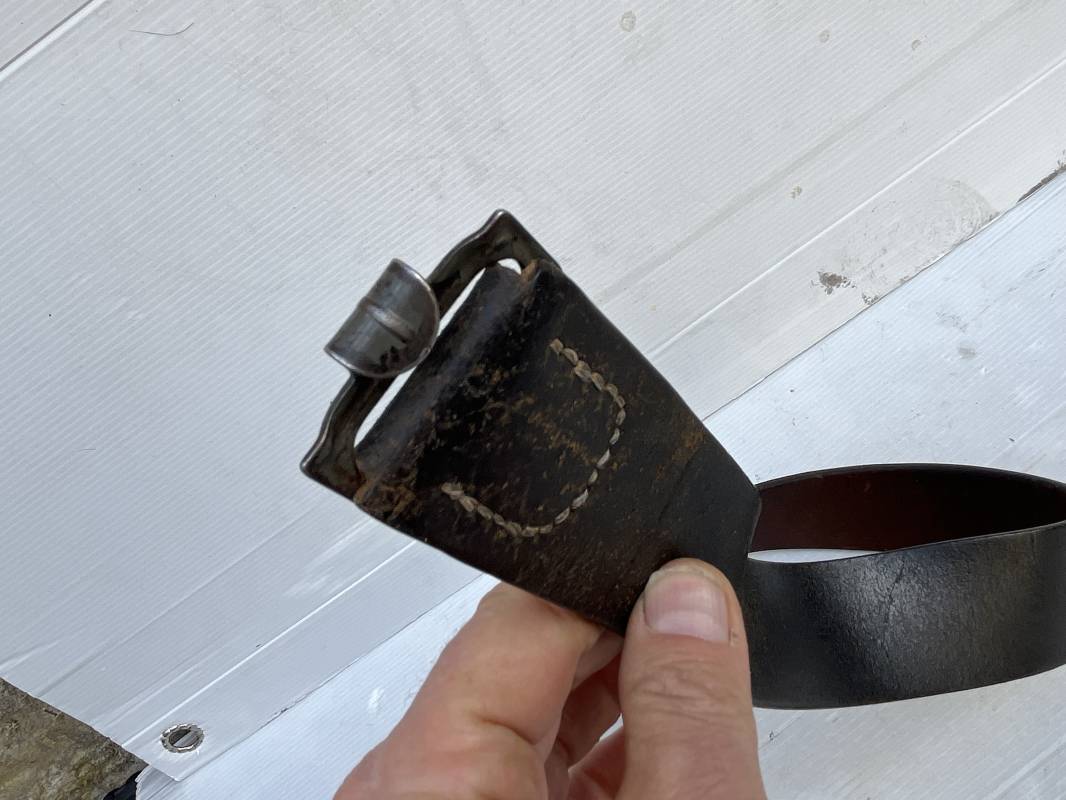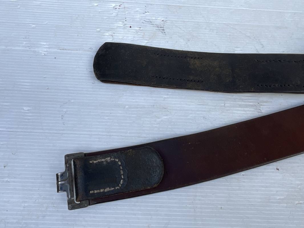 Ceinturon troupe en cuir noir de la Wehrmacht . Crochet fer peint en vert . Languette intererieure en cuir ( recousue ) . Cuir souple , longueur 96 cm . Porté en bon état . Pas de marquage visible . Bon ceinturon terrain 1940/43 Ref 19863