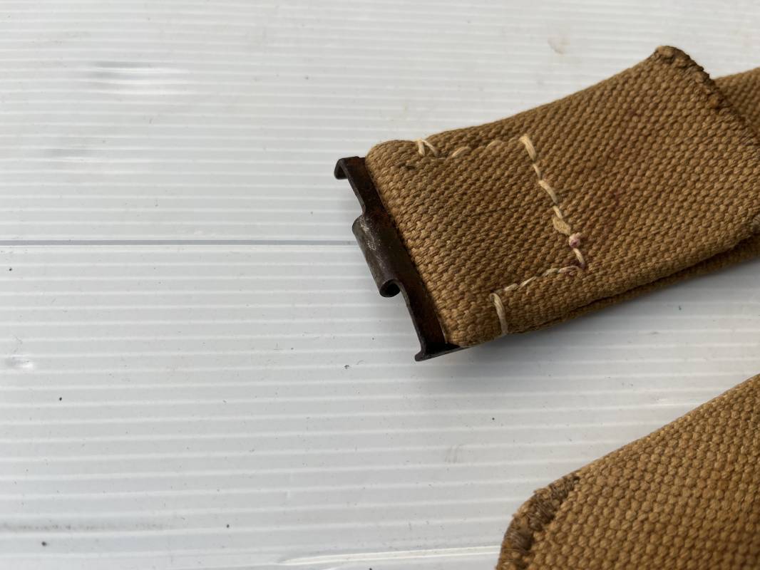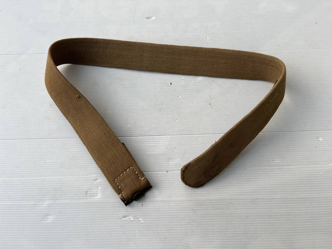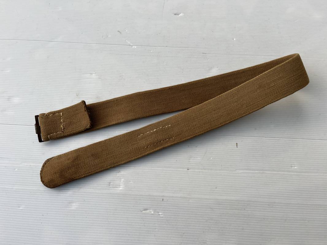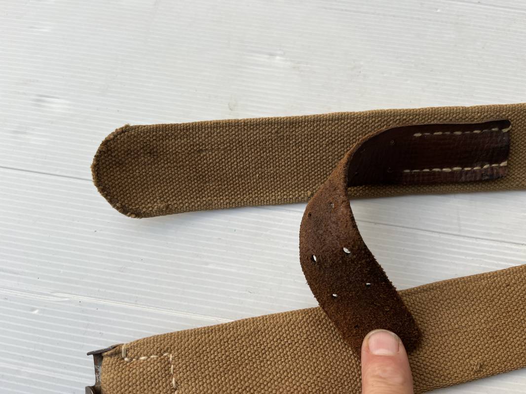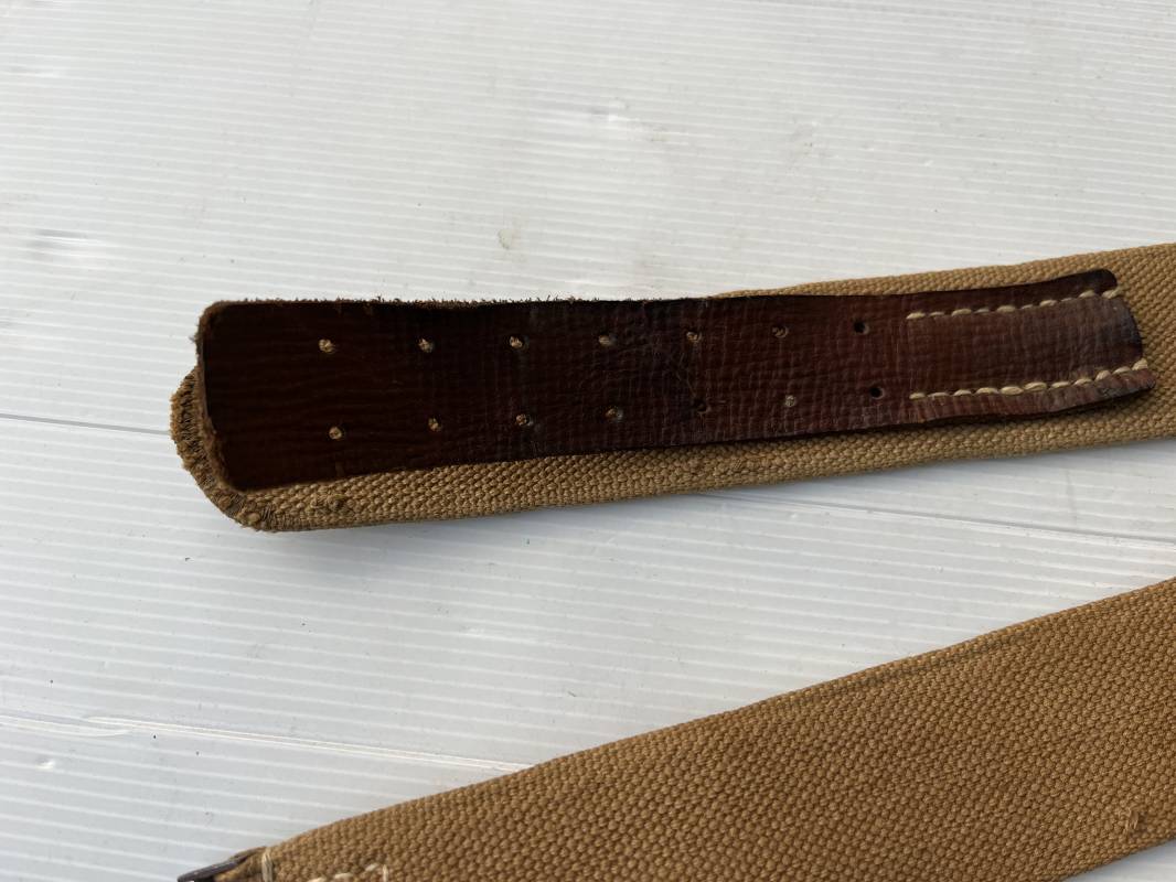 Ceinturon troupe du modéle tropical de la Wehrmacht . Trés beau ceinturon en coton filé jaune sable . Crochet de fixation en fer peint en vert . Languette interne en cuir marron de réglage de taille . Longueur totale 89 cm . Légérement porté en trés bel état 1940/45 Ce ceinturon toile a ete trouvé en brocante dans le secteur de coutances ( 50) Ref 21485