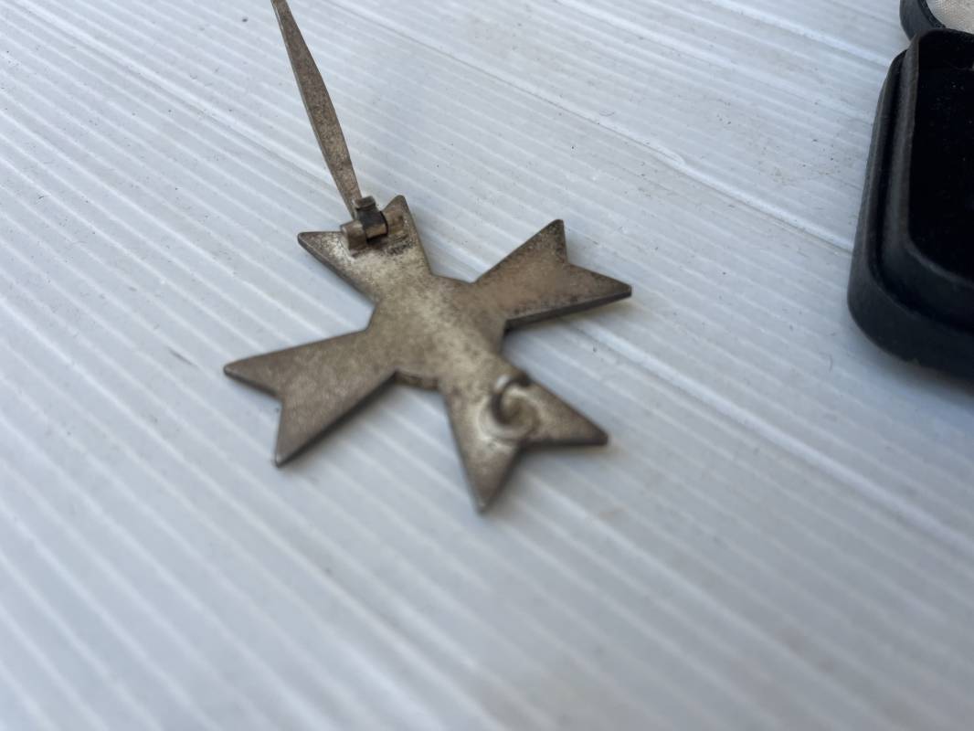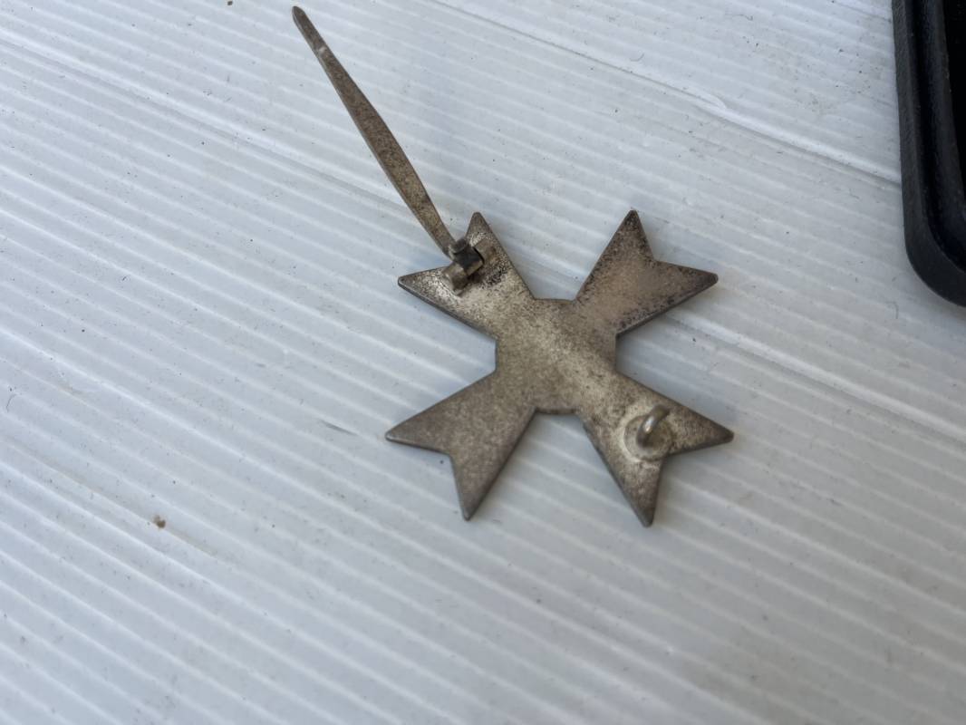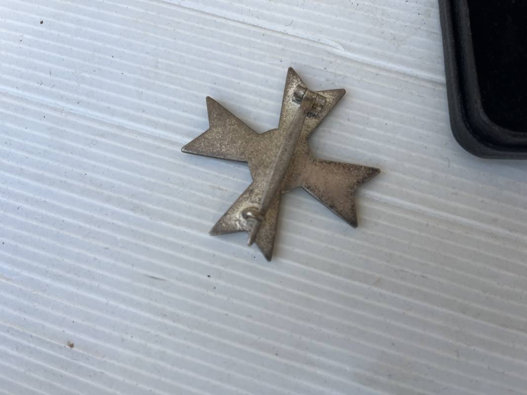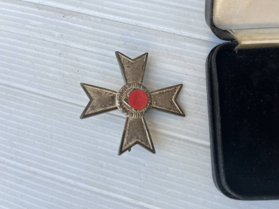Trés belle croix de mérite 1939 de première classe et son boitier . Belle fabrication soignée, beaux reliefs, fabrication massive avec patine ' vieille argent '. Attache et crochet d’origines au dos. Légèrement porté en parfait état . Boitier en carton , marquage LDO sur la soie interieure . Intérieur doublé en soie blanche , et velours noir . Trés bel état . Bel ensemble trouvé en Allemagne Ref 21310