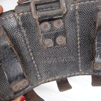 Trés belle paire de cartouchières 98K en cuir noir grenelé de la Wehrmacht . Passants cuir de ceinturon . Rivets métalliques . Anneaux . Marquages fabricant codes Rbnr . Paire légèrement portée en trés bel état . Separations interieures presente sur une cartouchière et manquante sur une autre . Bon équipement en parfait état .Ref 19634