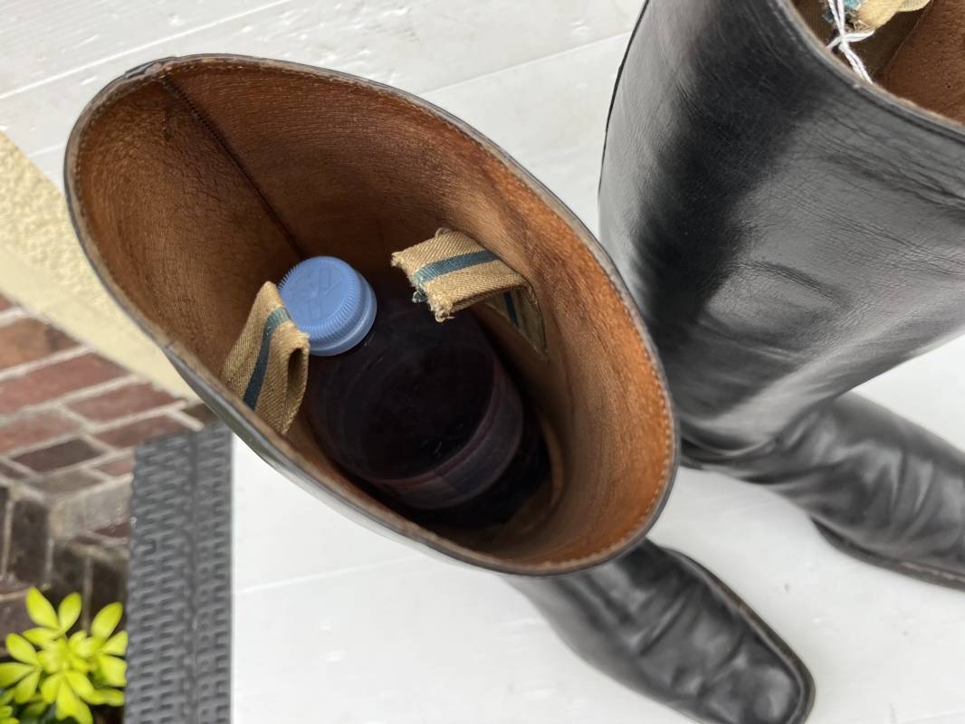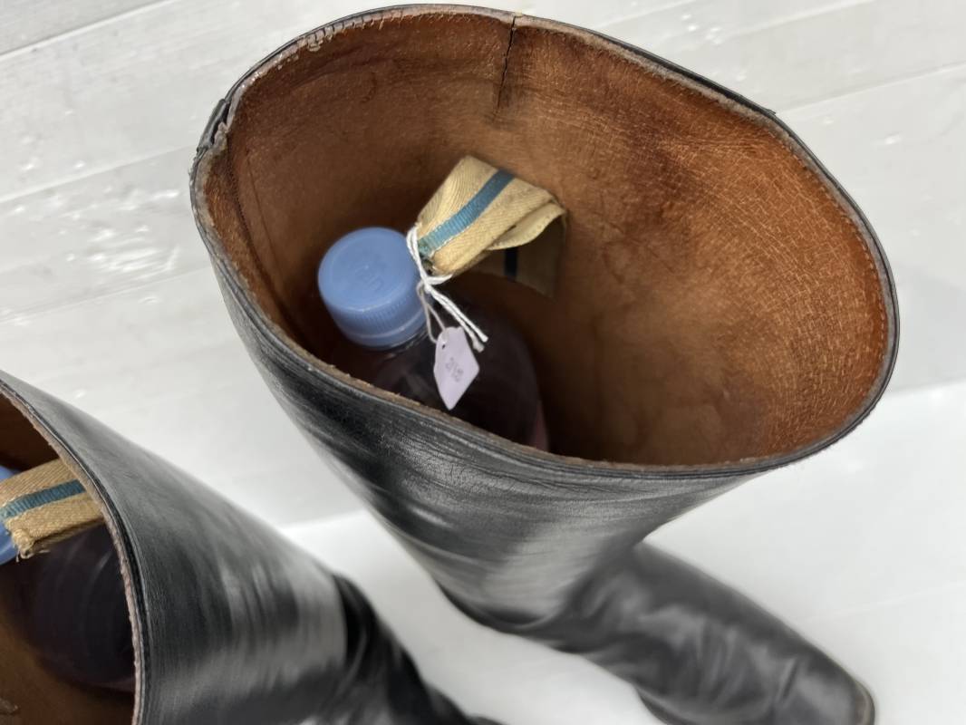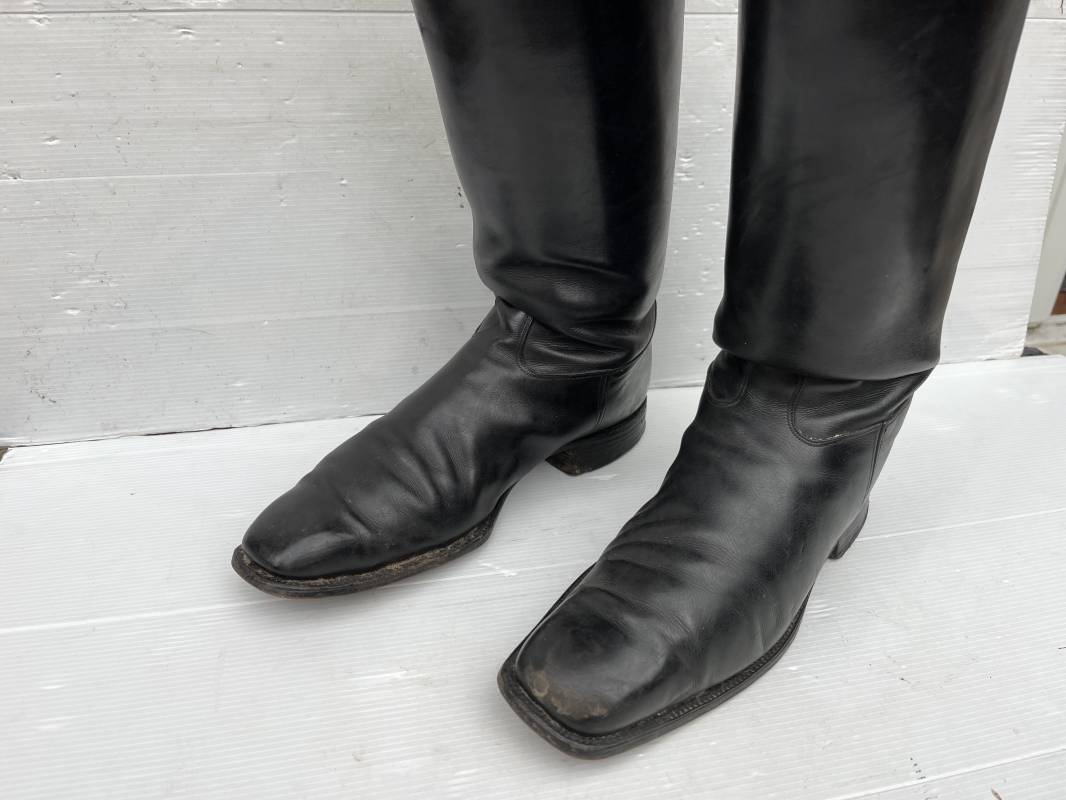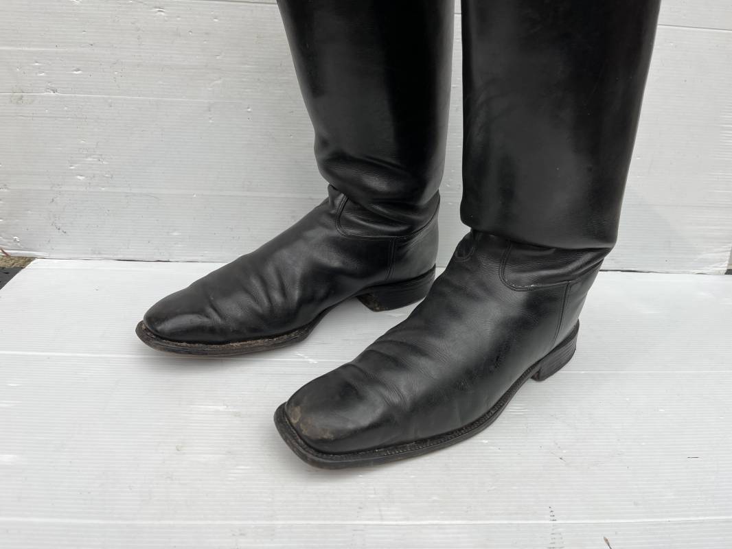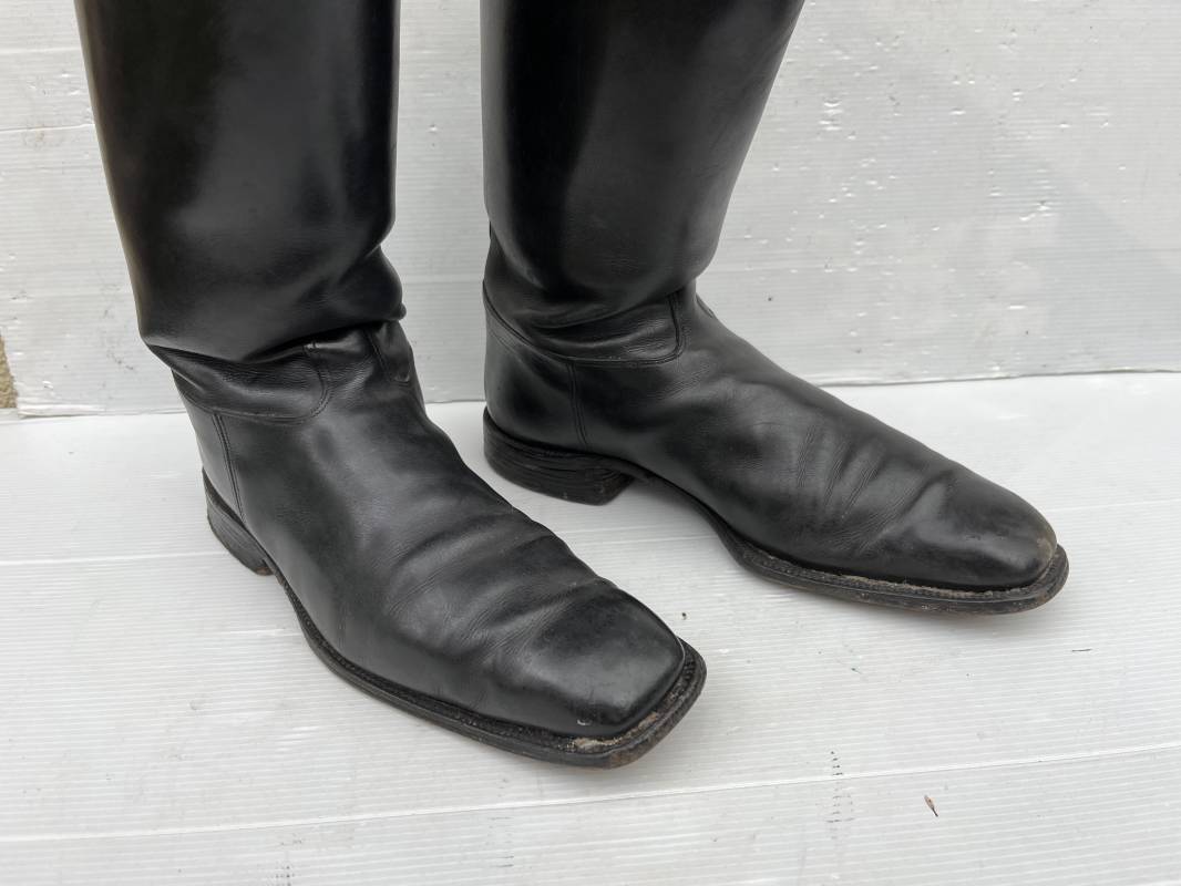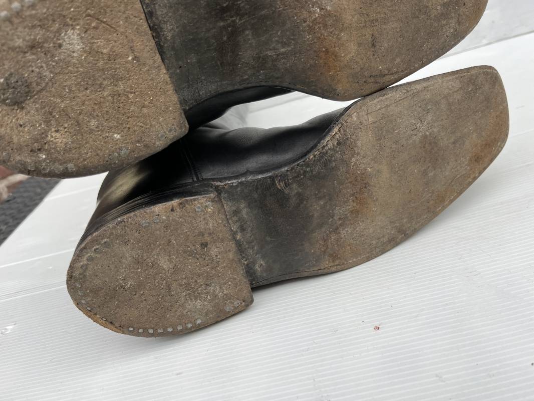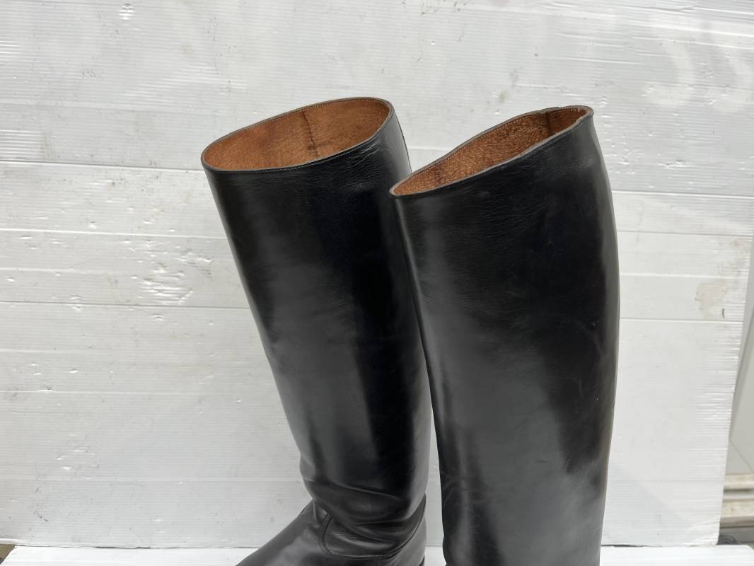 Trés belle paire de bottes d'un officier de la Wehrmacht Tiges dures . Tirettes en toile de coton blanc rayé bleu . Semelles et talons en cuir d'origines . Semelles cousues et talon cloutés . Longueur semelle 30,50 cm . Taille 43/44 environ hauteur botte 44 cm . Cuir souple . Trés belle de bottes légérement portée en trés bel état . 1935/45 Ref 21493