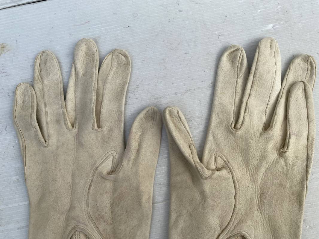 Belle paire de gants d’un officier en suédine blanche pour tenue de défilé ou de sortie. Deux petits boutons en nacre. Marquage encre fabricant. Taille 8. Légèrement porté en parfait état 1935/45. Ref 15233