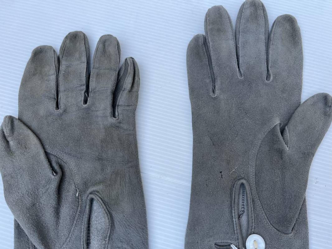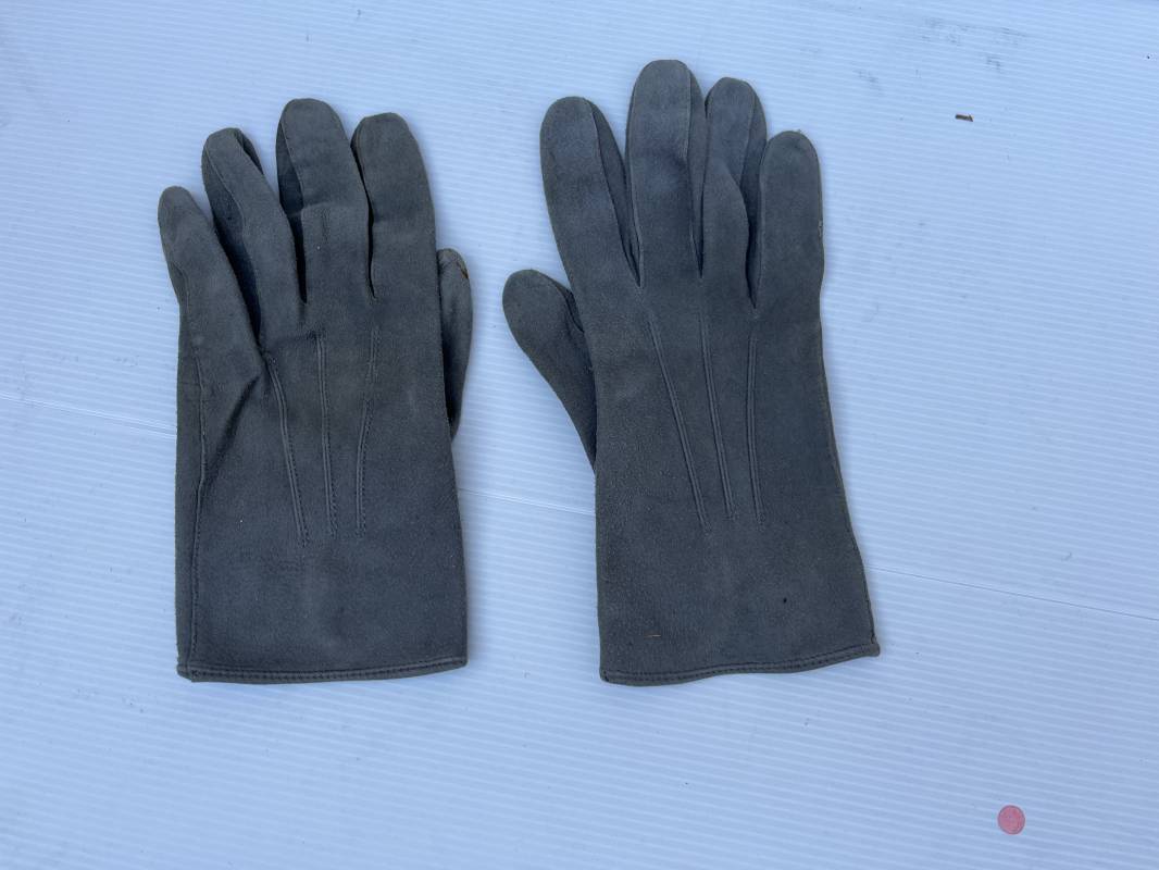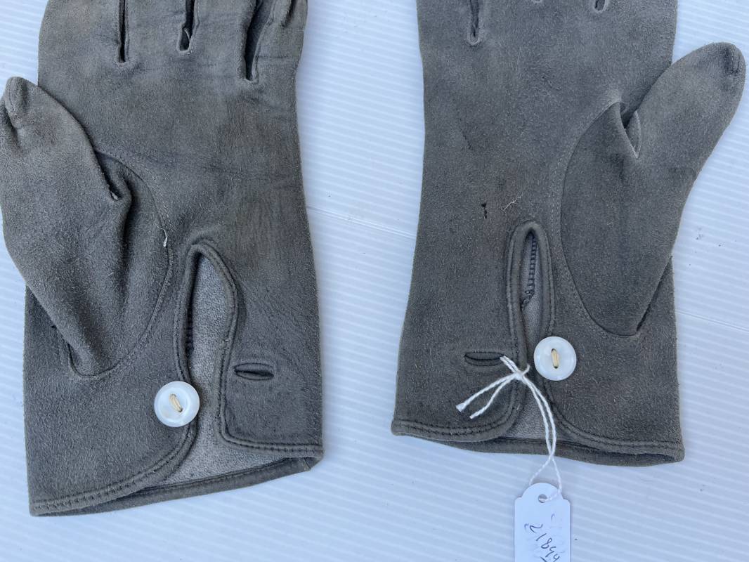 rès belle paire de gants pour cadre de la Wehrmacht (officier ou sous officier). Gants en suédine grise. Tampon encre taille 81/2 Marquages encre noire .Boutons de fermeture en nacre blanc . Paire de gants très légèrement portée en parfait état 1935/45.21849