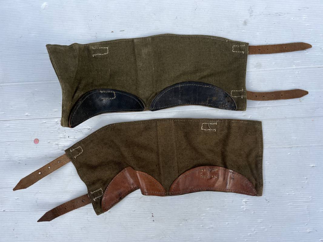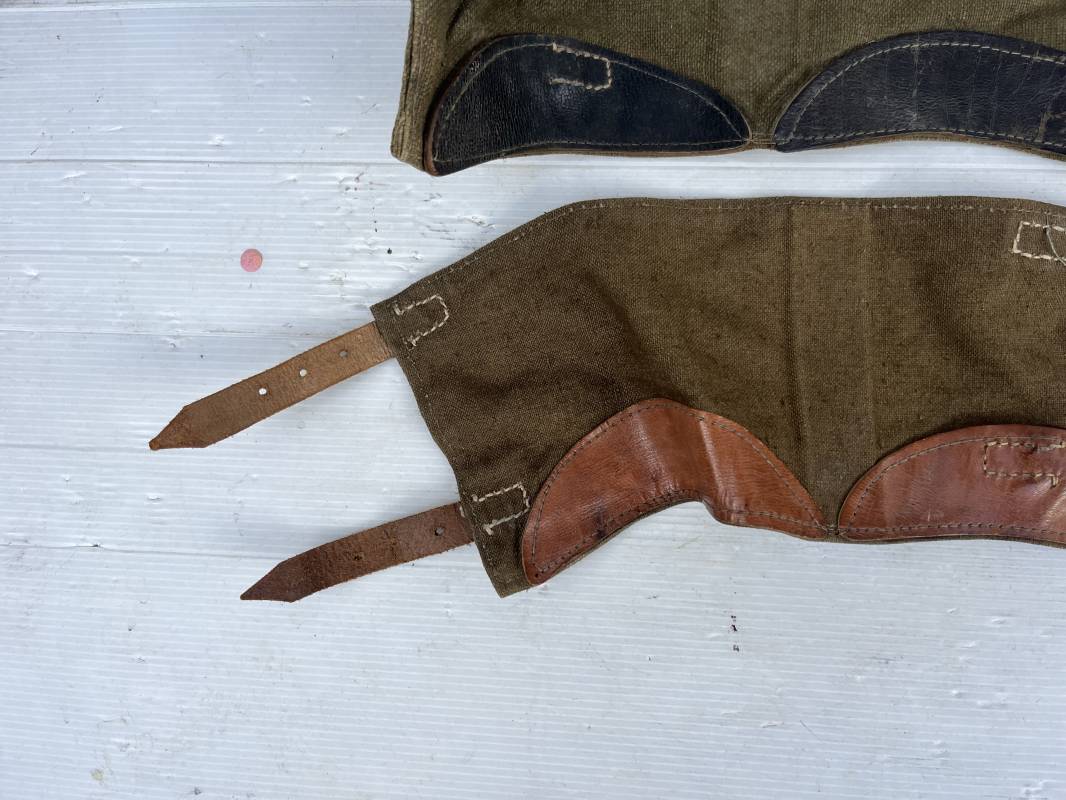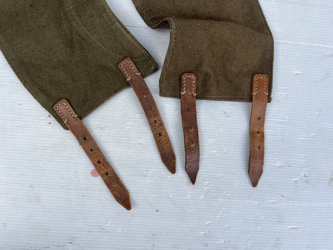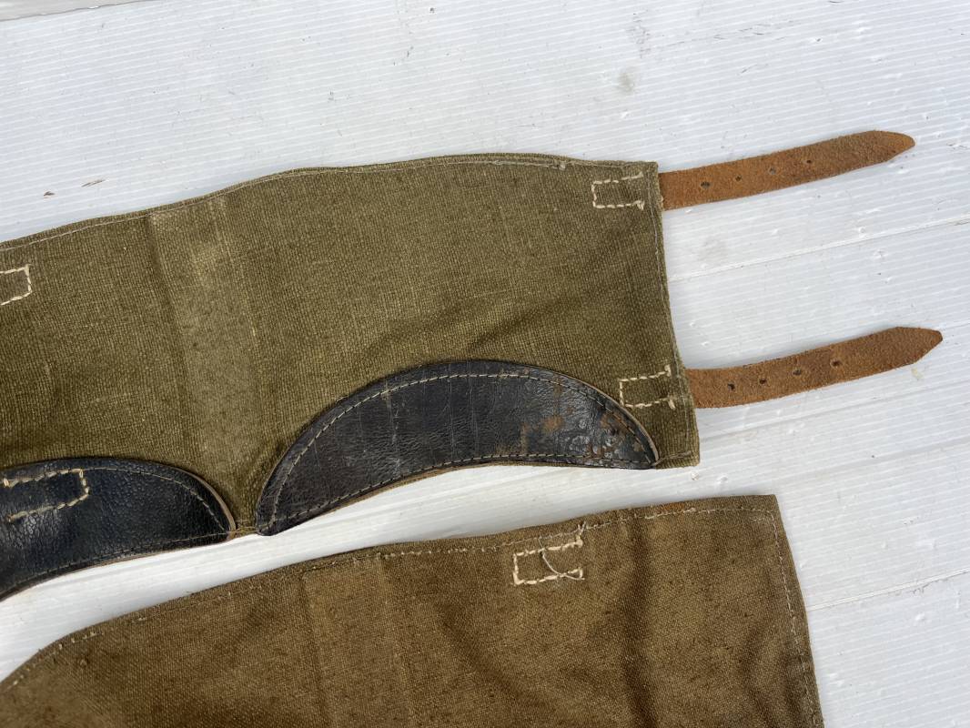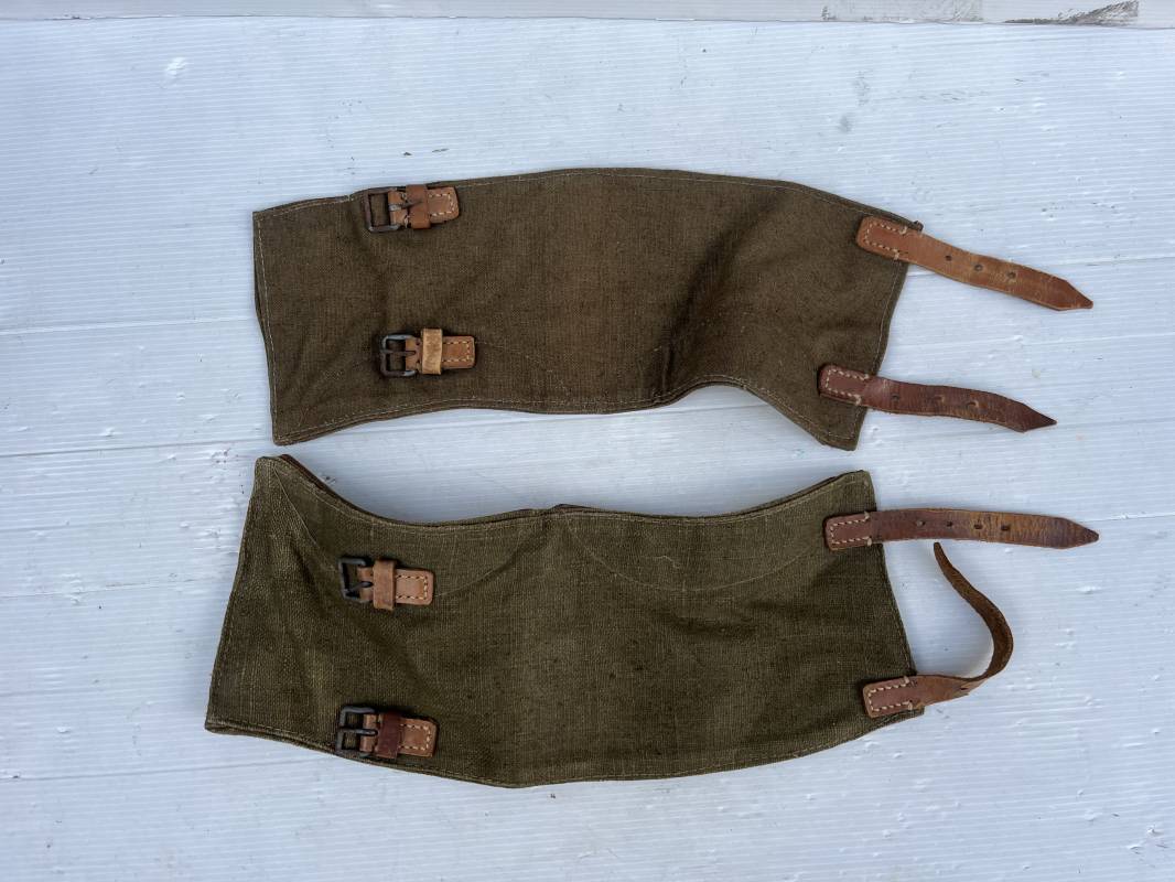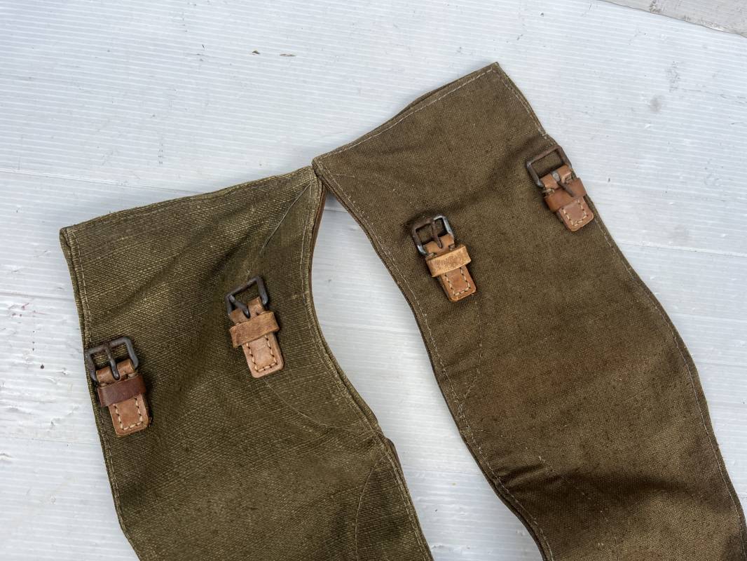 Trés belle paire de guètre de la Wehrmacht en forte toile de couleur marron . Lanières en cuir marron clair , boucles en métal . Renforts en cuir en bas de guètres . Légérement porté en bel état Ref 20039