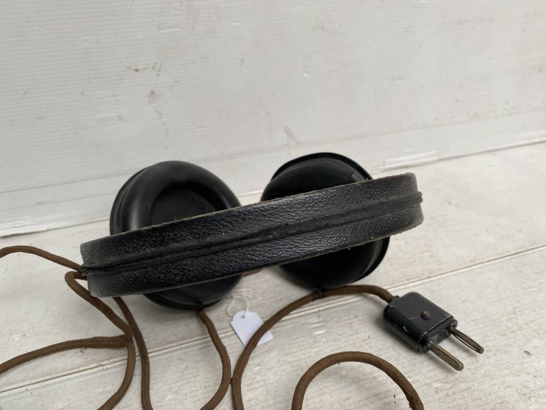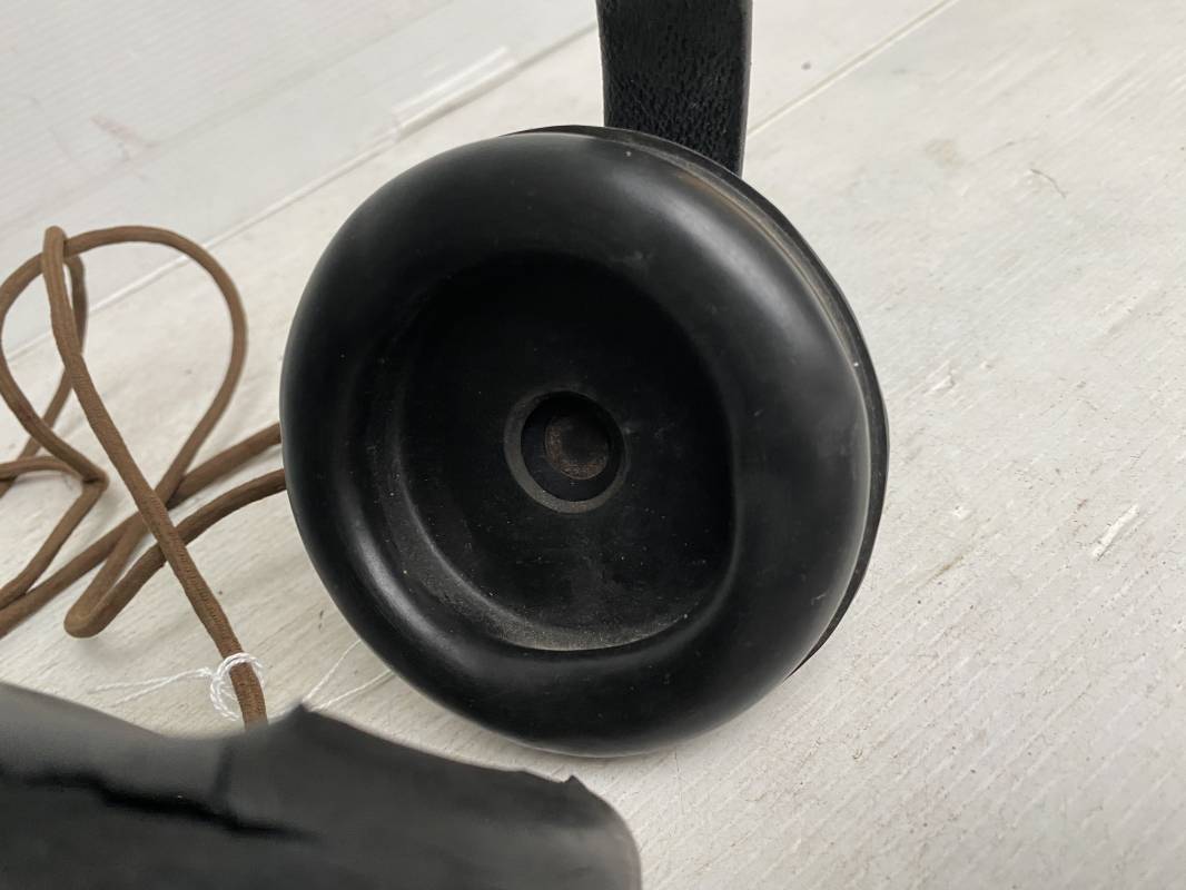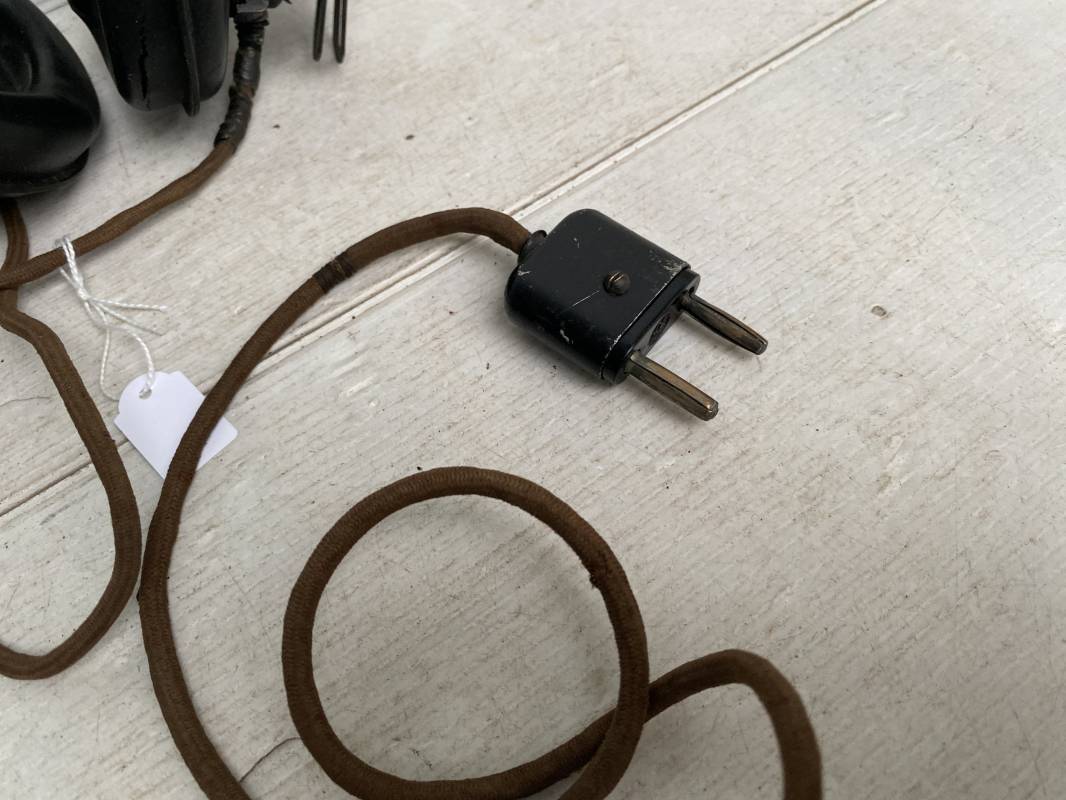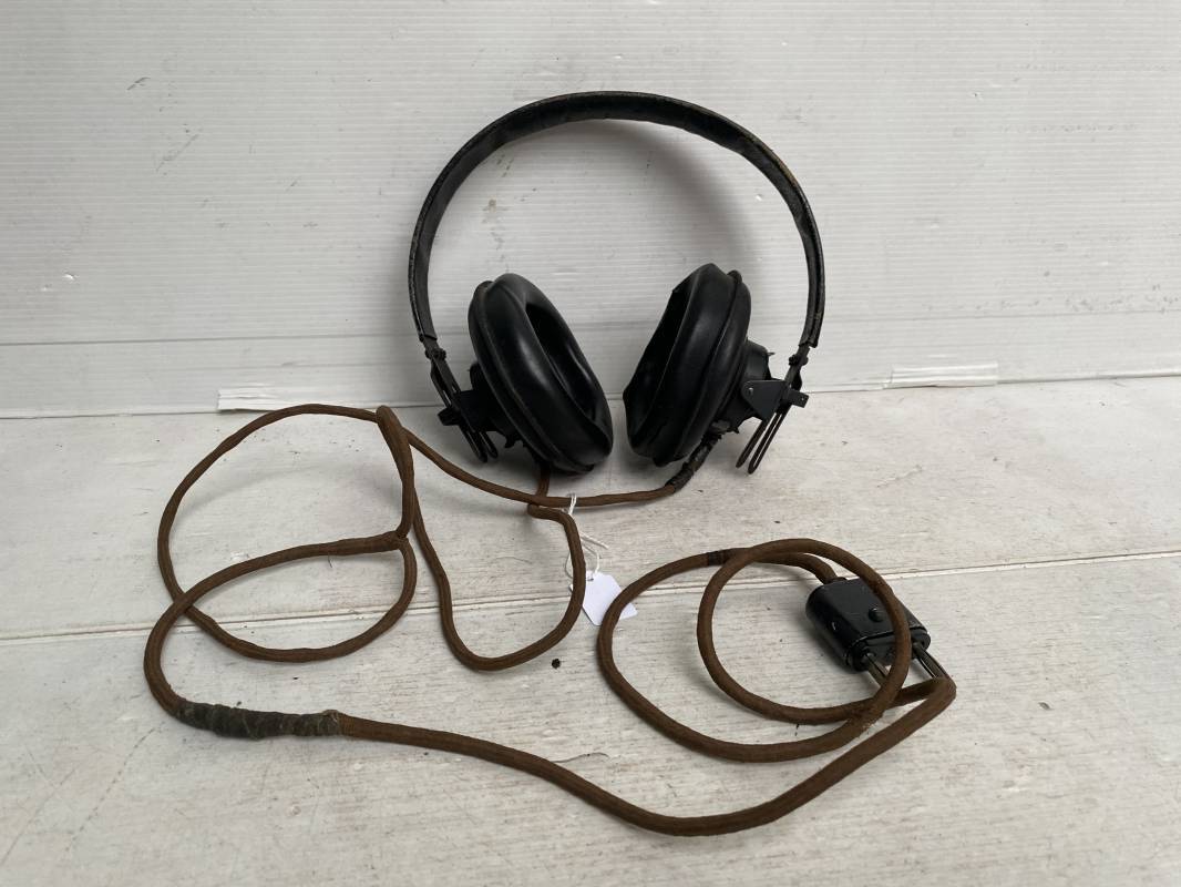 Belle paire d'écouteurs d'un tankiste d ela Wehrmacht . Ces écouteurs ont été trouvés en brocante dans l'Est de la France . 100 % dans leur jus et intouchés . Cerclage métallique gainé en cuir noir . 2couteur avec marquage fabricant SABA , Type Dfh.b 1942 . Caoutchouc souple et d'origine . A noté déchirures sur un des écouteurs mais aucun manque .Cable gainé en coton brun avec fiche d'origine . Bel ensemble porté en bel état 1942/45 Ref 19057