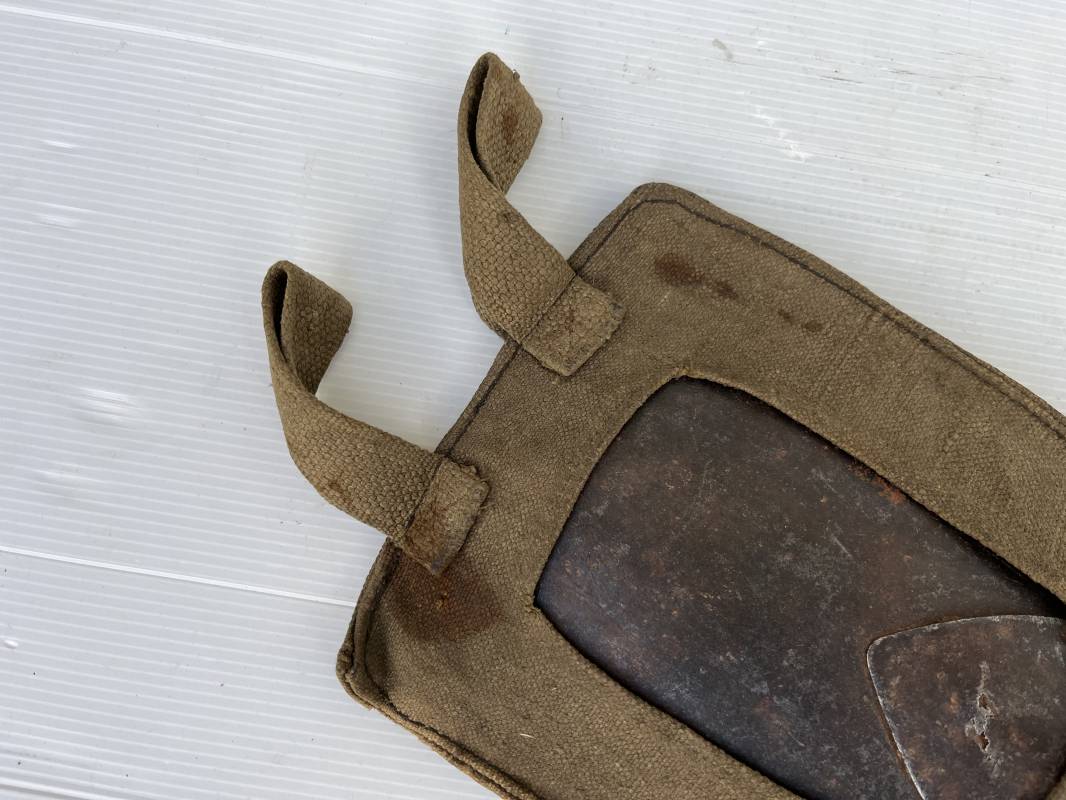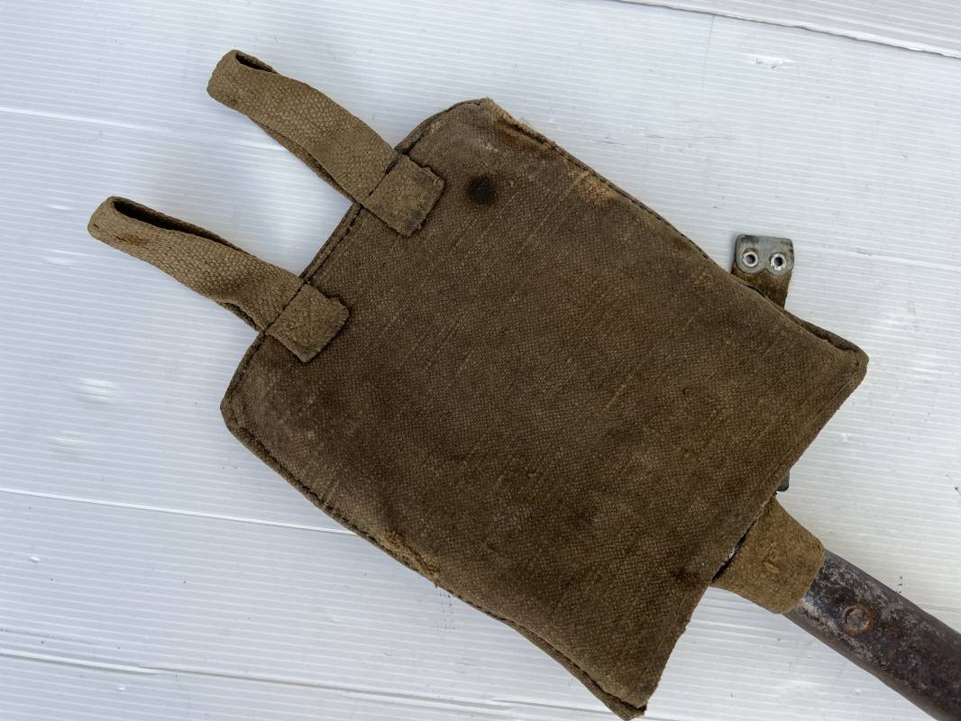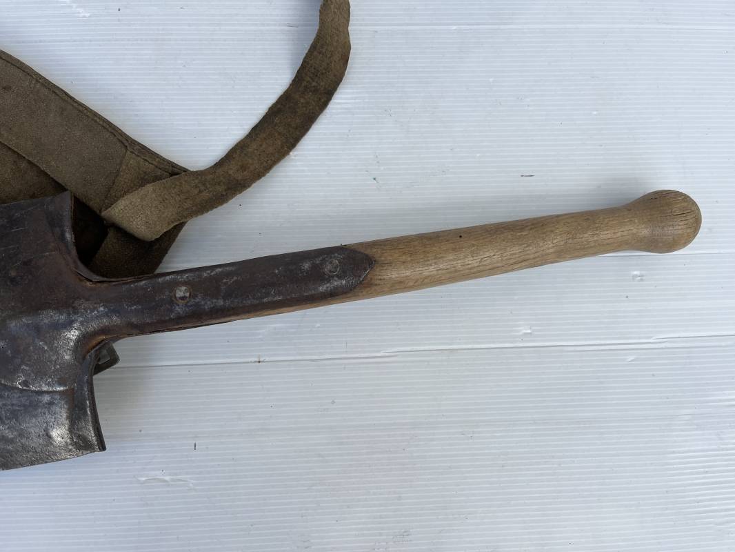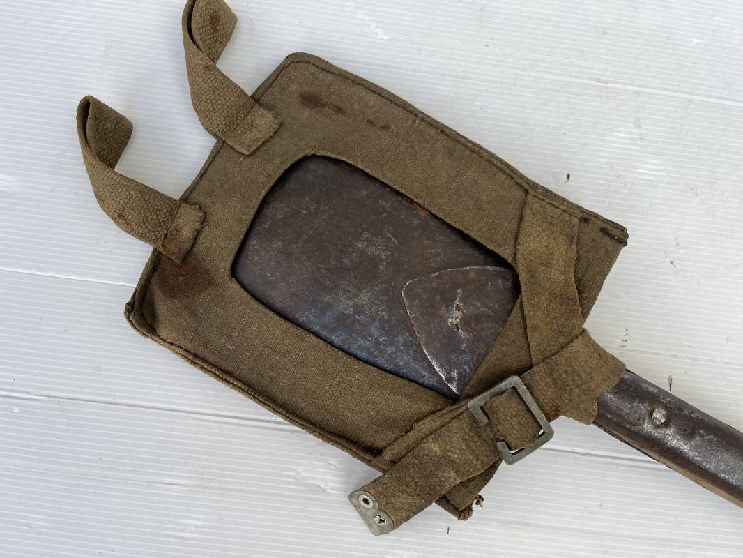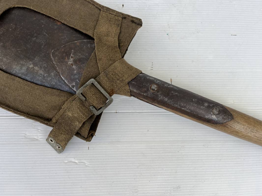 Pelle droite individuelle et son étui en toile verte . Modéle tropical et ersatz . Ce bel ensemble intouché a été trouvé en brocante dans le secteur de Coutances ( 50) Pelle acier. Manche en bois , légères traces de corrosion sur acier . Etui en forte toile verte . Lanière et passant de ceinturon en toile . Boucle métallique. Bel ensemble homogène, utilisé et dans son jus . bon état 100 % dans son jus et totalement intouché 1939/45. Ref 21486