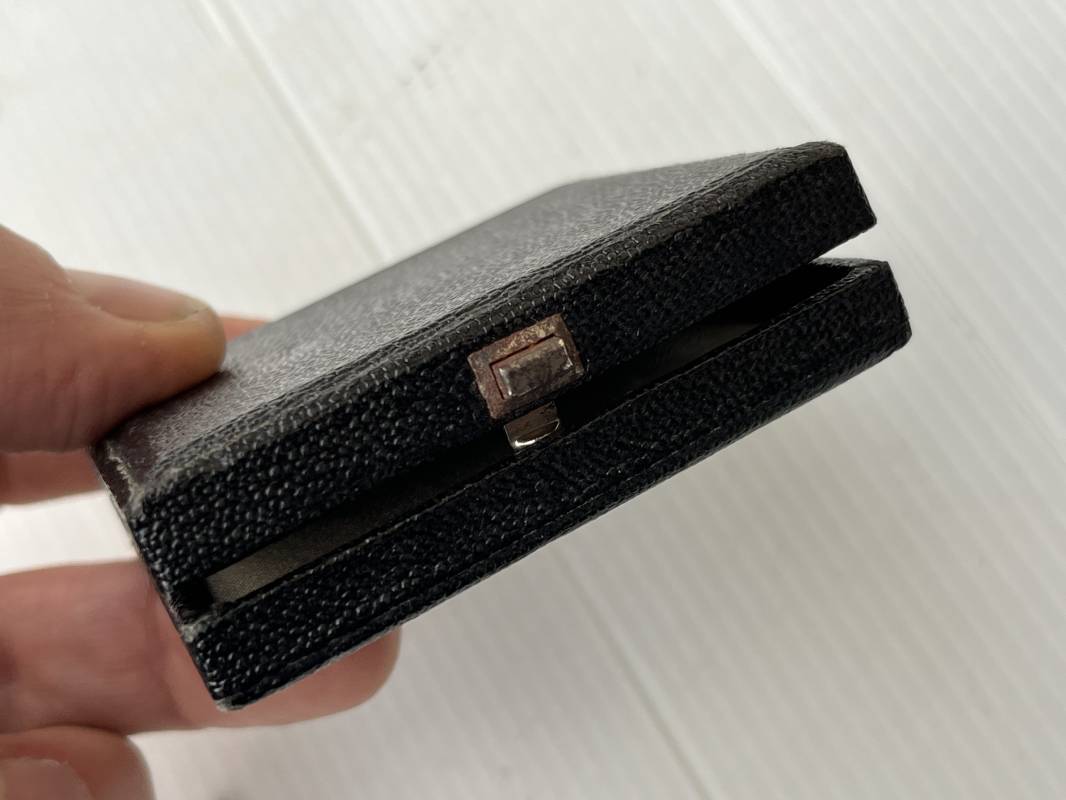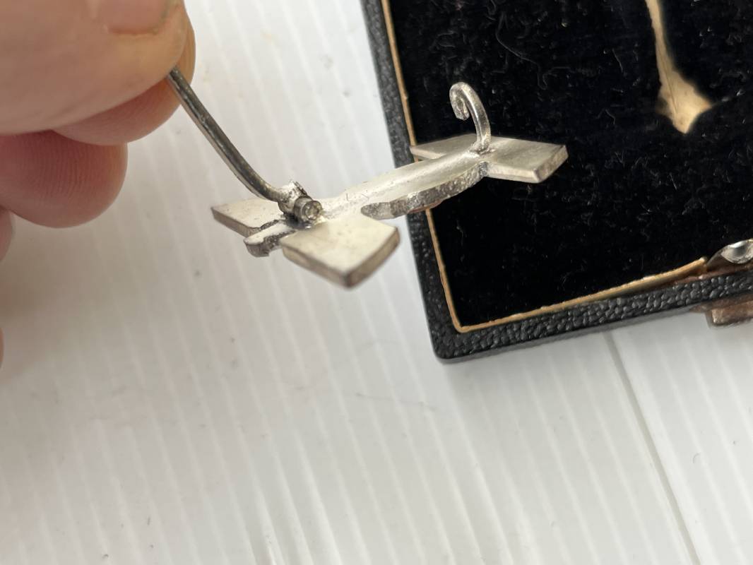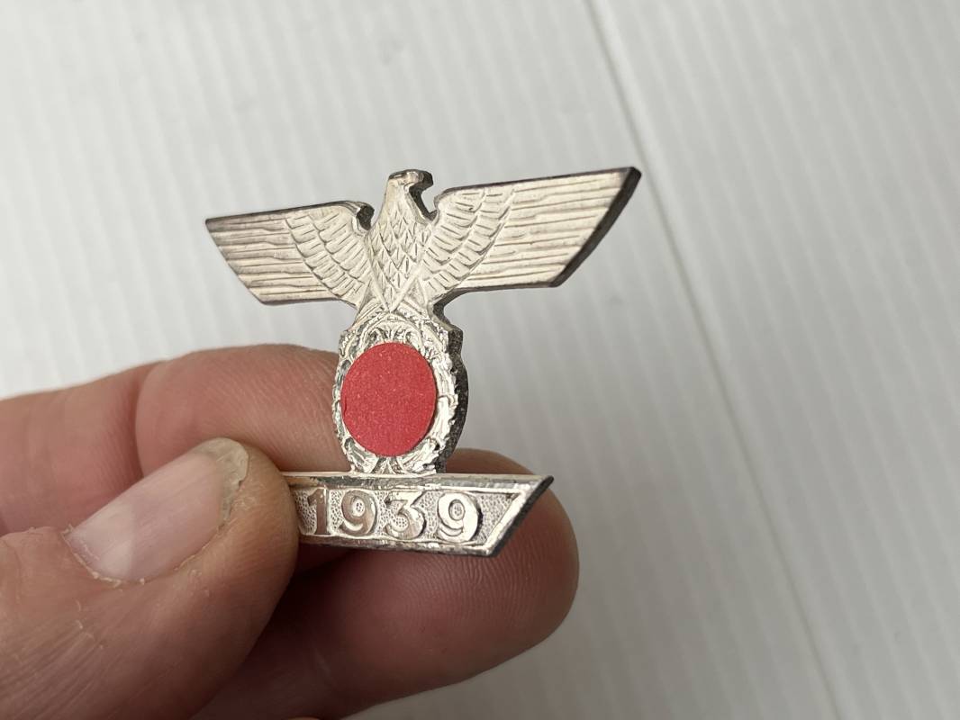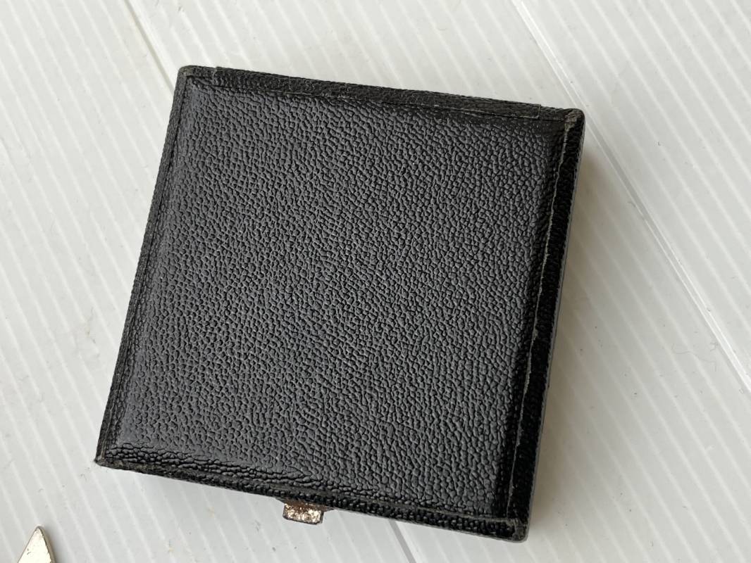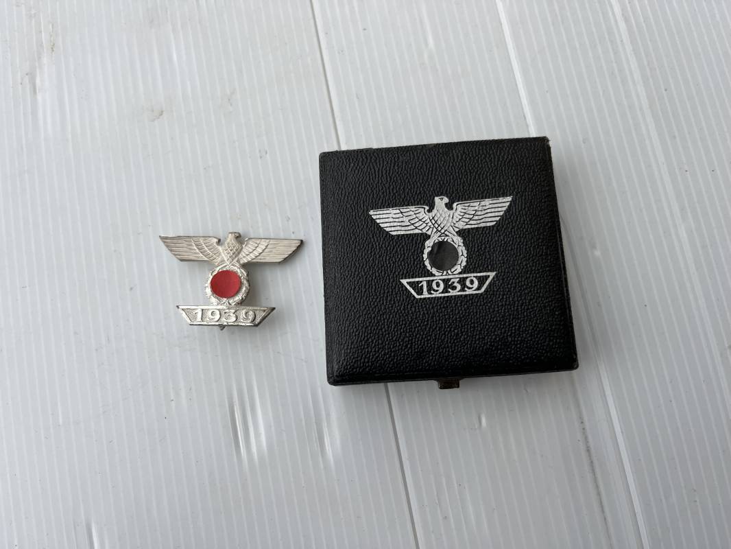 Rare rappel de croix de fer 1ére classe 1939 et son boitier . Rappel de trés belle qualité avec arètes polies , tres belle argenture au blanc de Berlin , attache et crochet au dos . Superbes reliefs . Rare boitier en carton recouvert papier grenelé noir , aigle sur le dessus , Bouton poussoir , intérieur doublé en velours noir et soie blanche . Trés bel ensemble en superbe état trouvé en succession familiale a Paris . Totalement intouché . Rare ensemble Ref 19854