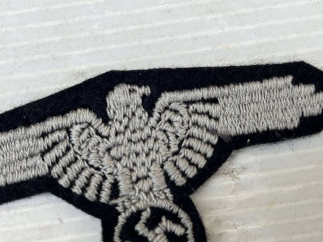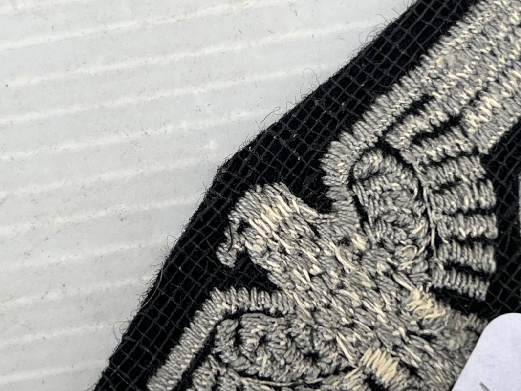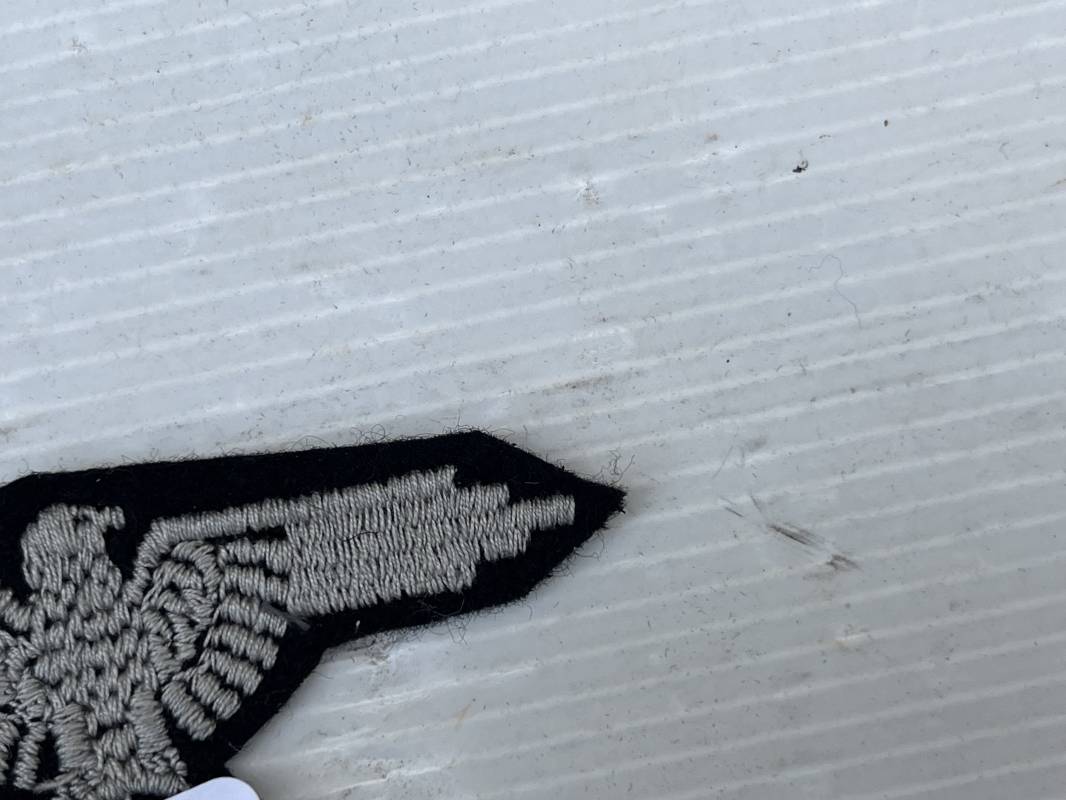 Trés bel aigle d ebras troupe de la Waffen SS . Aigle du modéle brodé coton gris Drap de fond noir .Aigle jamais monté . Parfait état . Certifié d origine Ref 19211