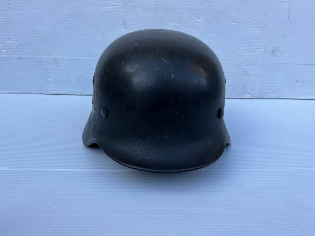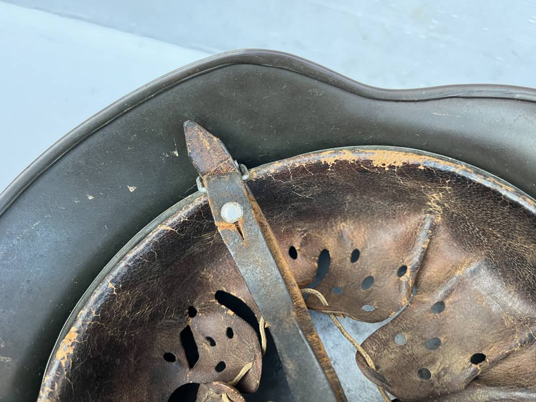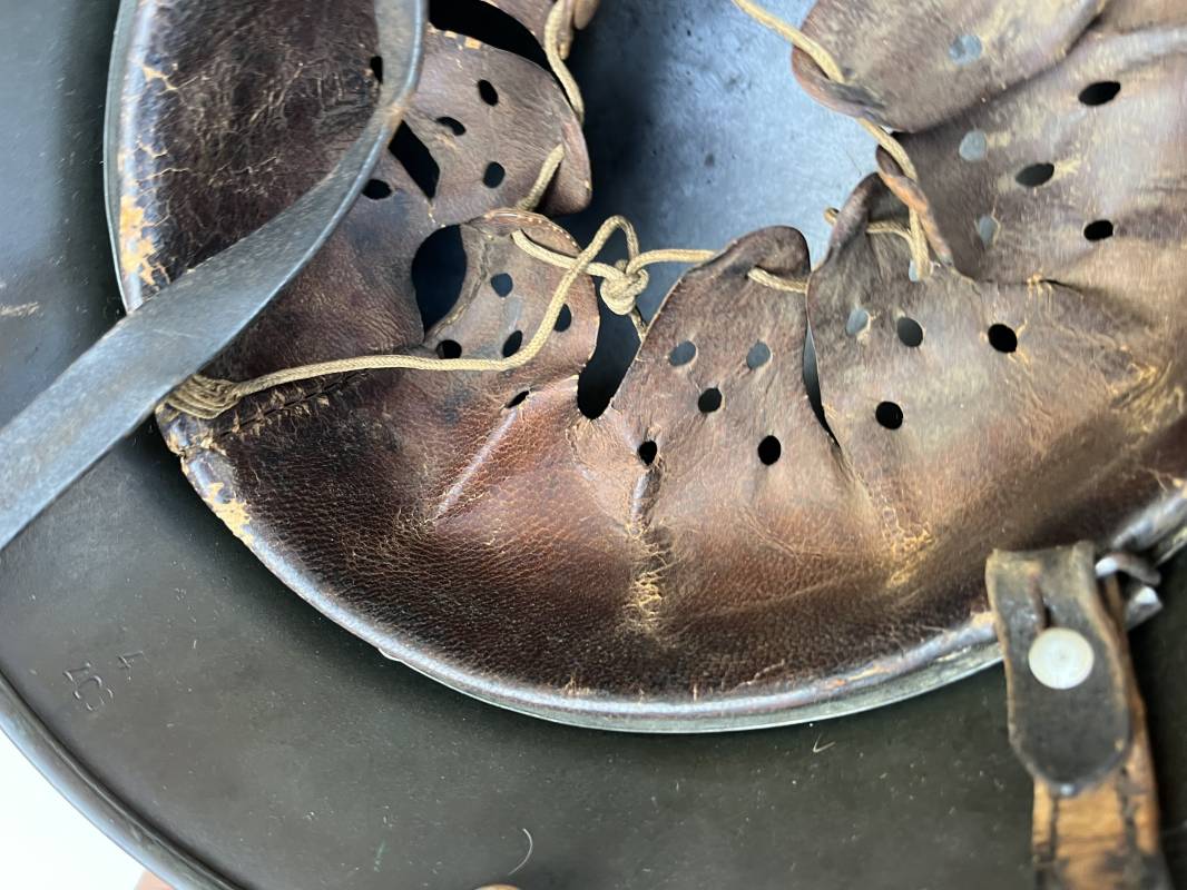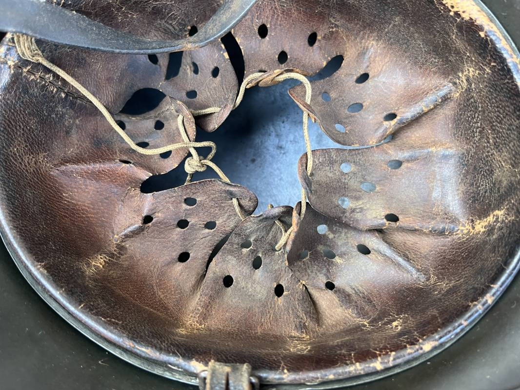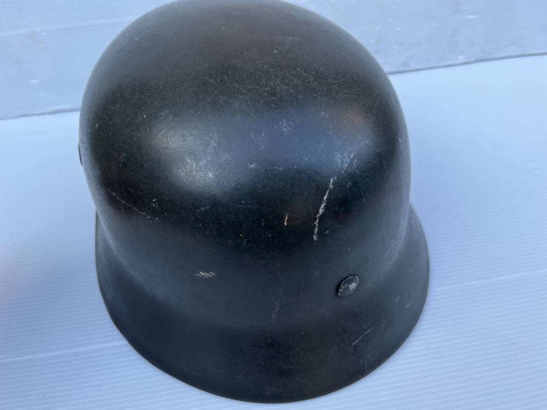 Exceptionnel casque modéle 1940 de la Waffen SS avec runen sur le coté gauche . Fabricant Eisenhuttenwerke Thale . Ce casque est dans un état exceptionnel 100 % intouché . . Certificat d authenticité et de vente de chez Steel Helmet USA Kelly Hicks ( un des plus grands specialistes des casques allemands au monde ) . . Authenticité absolue garantie pour ce casque . Peinture feldgrau lisse , non frottée non nettoyée . . Un insigne runen sur le coté droit a 100 % Insigne du modele de chez ET légèrement incliné .L inclinaison des runen est typique chez le fabricant ET . Marquage fabricant ET 64 numero nuquière 4 406 . Trois rivets avec contre rivets jamais démontés . Cerclage en zinc modele 1940 . Coiffe en cuir marron taille 56 , cuir souple patiné . Lace en coton d origine . Jugulaire en cuir noir , , boucle ALU a un ardillon , treize trous . Trés beau casque sans aucun défaut . Une pièce exceptionnel par son état et son jus . Ref 16179