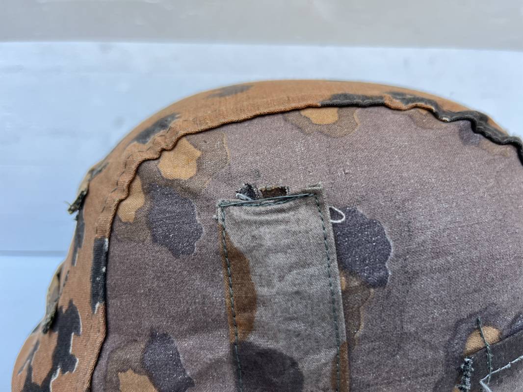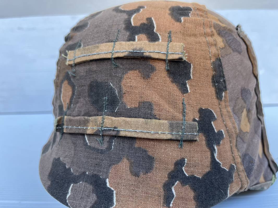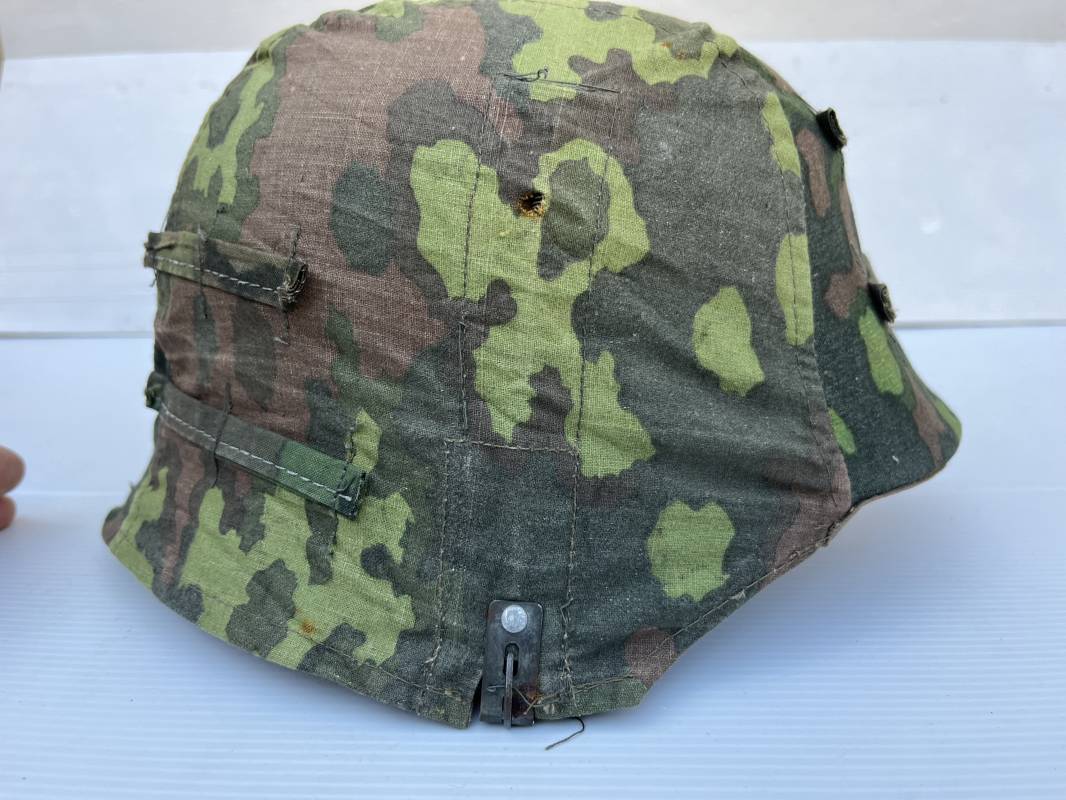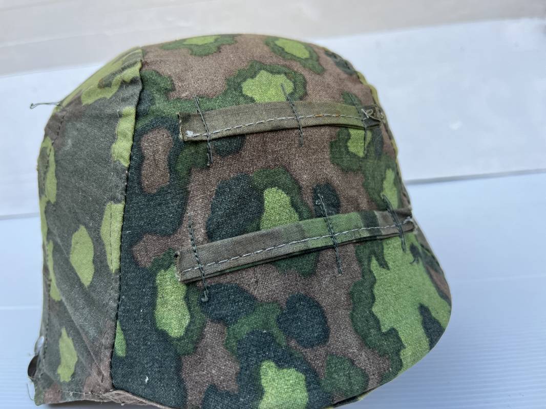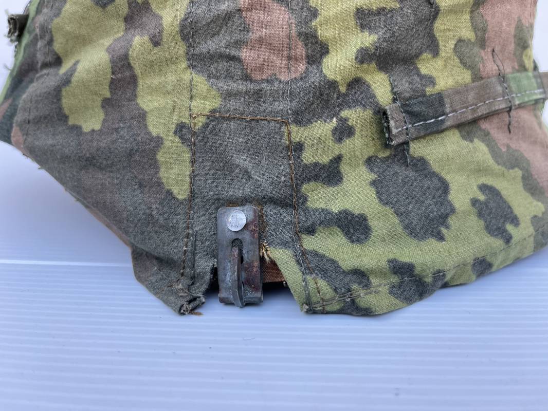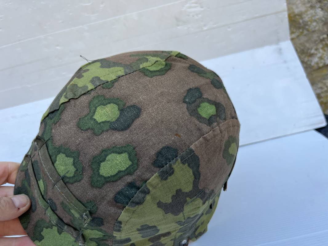 Trés rare couvre casque de la waffen SS du 3éme type avec brides de camouflage , confection Fin 1943/45 ; Camouflage réversible Printemps /automne type A et B modele 'feuilles de chéne' . Modele a trois crochets de fixation . Crochets en métal brut , rivets metalliques , ressorts métalliques d origines et fonctionnels .Taille de couvre casque' I' marquage encre sur l arriere du casque ( pour coque de casque 60/62 ) . Dans l annonce le couvre casque est presenté sur un casque coque 62 lequel casque ne fait pas partie de la vente . Le couvre casque est vendu SEUL sans le casque . Brides de camouflage Couvre casque trés légérement porté en superbe état . Trés bellees couleurs . Couvre casque sans aucun défaut . Une rarissime pièce définitive en collection . Authenticité garantie .Vendu avec certificat d authenticité . Ref 16807