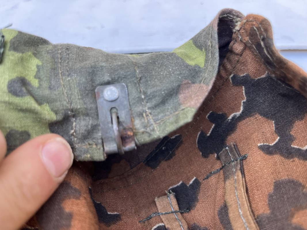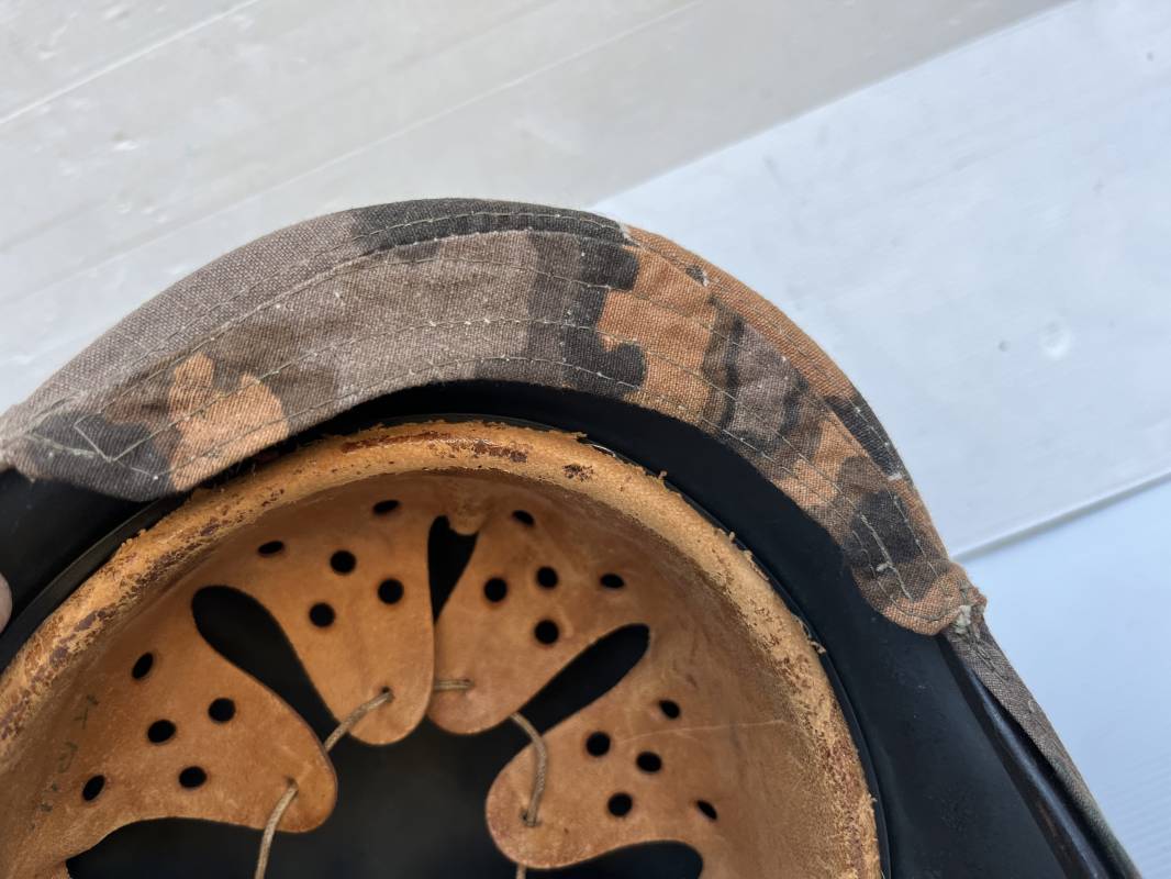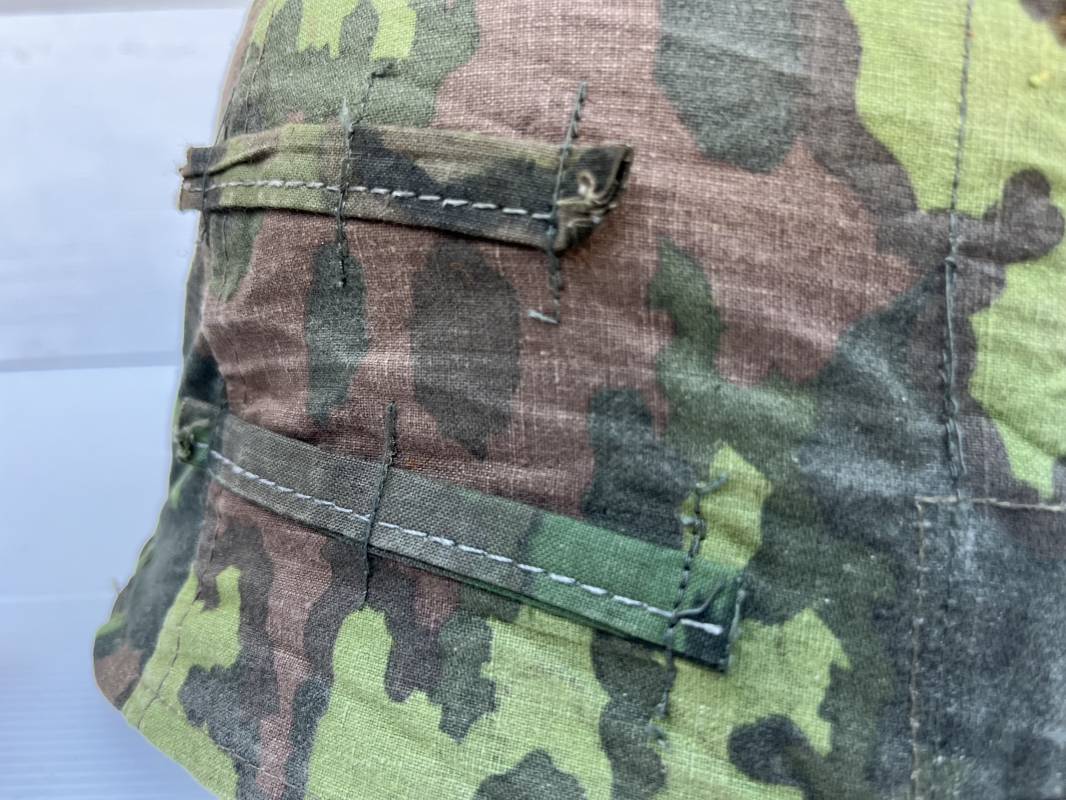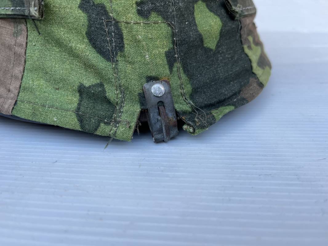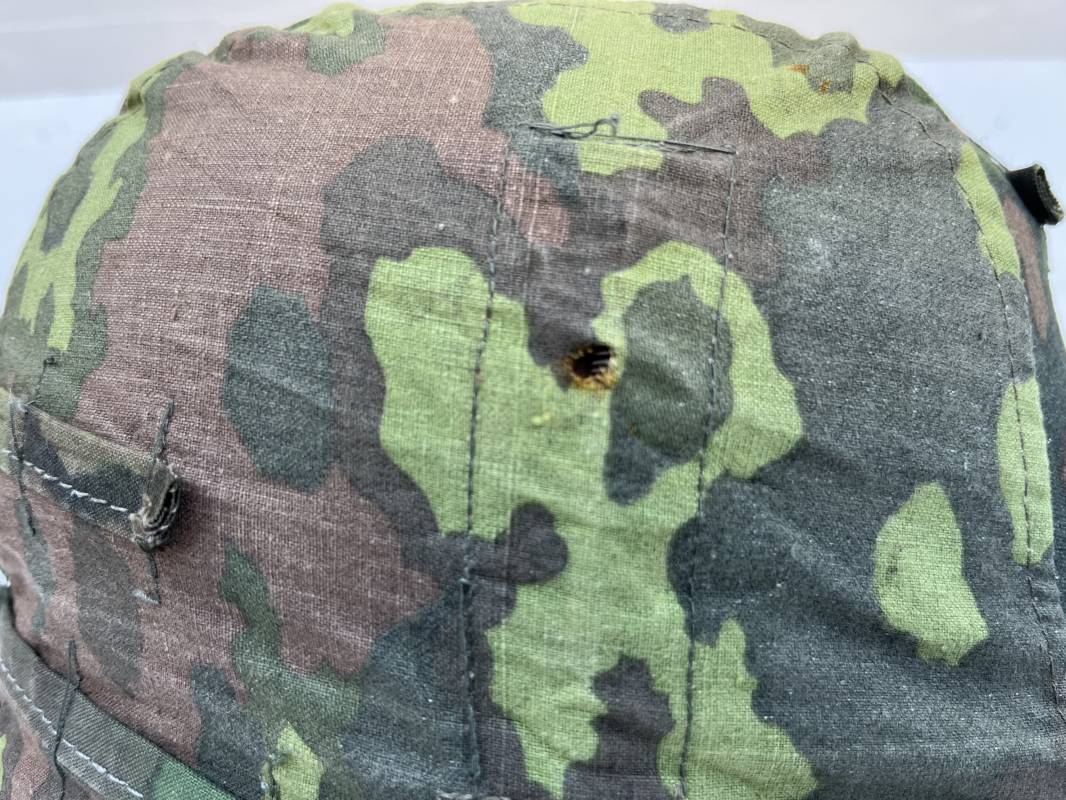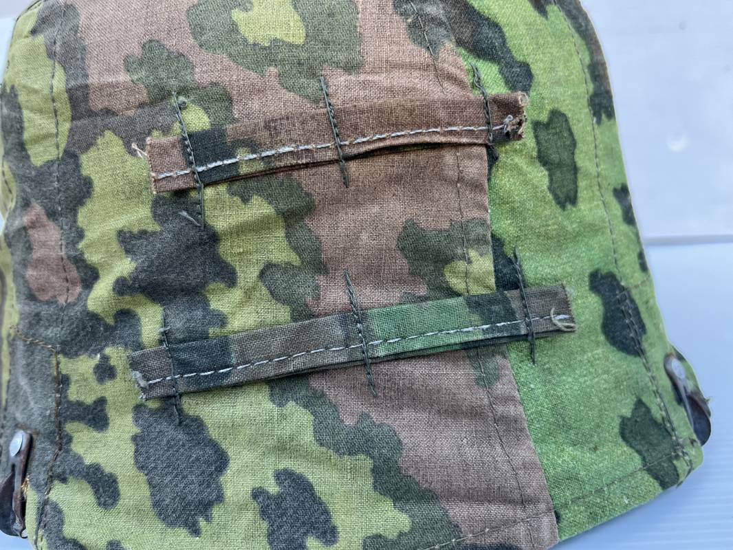 Trés rare couvre casque de la waffen SS du 3éme type avec brides de camouflage , confection Fin 1943/45 ; Camouflage réversible Printemps /automne type A et B modele 'feuilles de chéne' . Modele a trois crochets de fixation . Crochets en métal brut , rivets metalliques , ressorts métalliques d origines et fonctionnels .Taille de couvre casque' I' marquage encre sur l arriere du casque ( pour coque de casque 60/62 ) . Dans l annonce le couvre casque est presenté sur un casque coque 62 lequel casque ne fait pas partie de la vente . Le couvre casque est vendu SEUL sans le casque . Brides de camouflage Couvre casque trés légérement porté en superbe état . Trés bellees couleurs . Couvre casque sans aucun défaut . Une rarissime pièce définitive en collection . Authenticité garantie .Vendu avec certificat d authenticité . Ref 16807